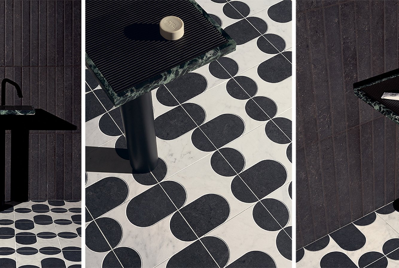С рисунком: Под мрамор, Под травертин, Моноколор, Под камень, Под мозаику, Геометрия