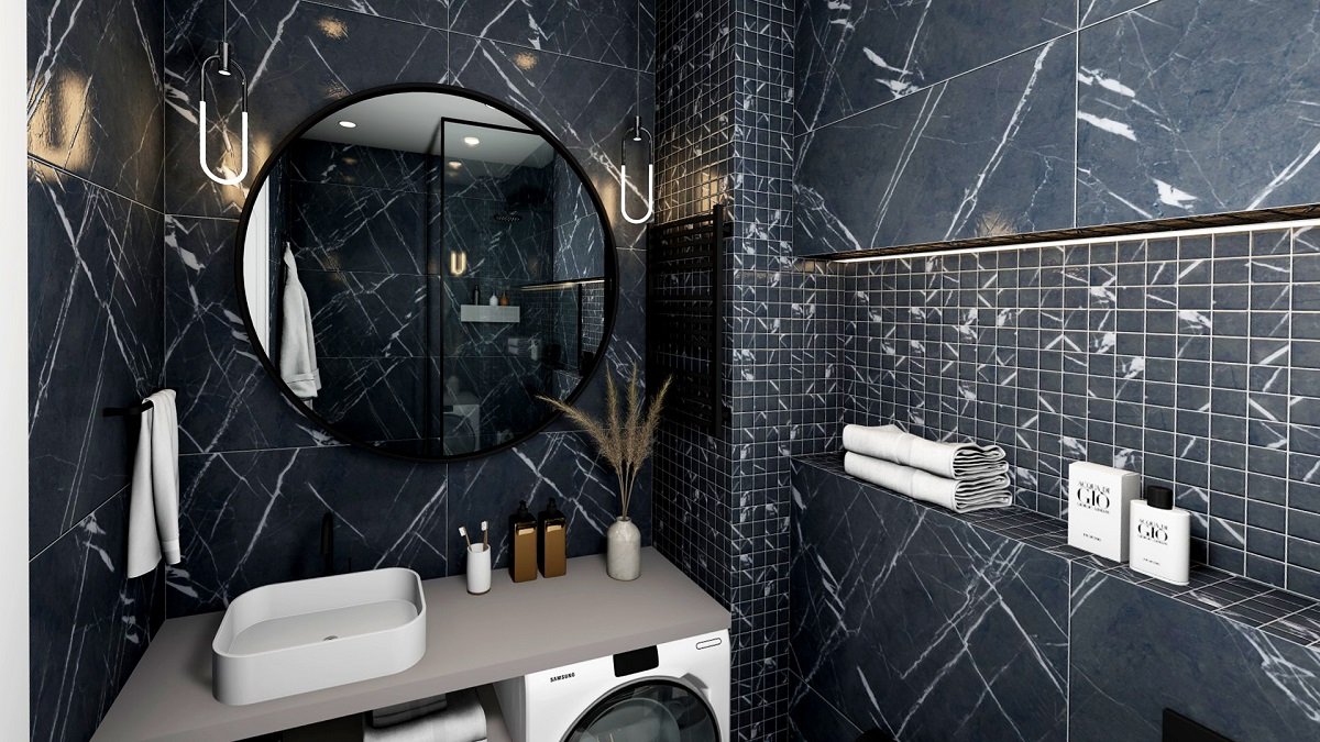 — В составе Absolut Gres Black Marquina есть мозаика, керамогранит, мозаика с рисунками под камень.