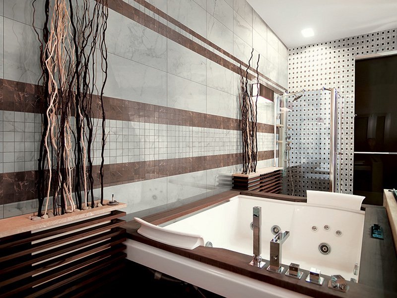 — Коллекция, а также её отдельные элементы подходят для ванной, для душа. Дизайнеры Royalstone могут составить для вас бесплатный 3D проект с использованием плитки из этой коллекции Alfalux.