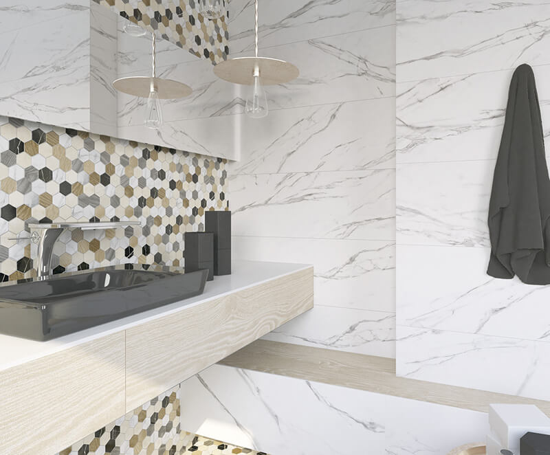 — Коллекция, а также её отдельные элементы подходят для ванной, для душа. Дизайнеры Royalstone могут составить для вас бесплатный 3D проект с использованием плитки из этой коллекции Arcana.