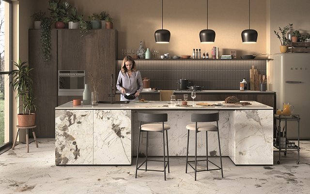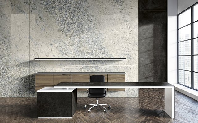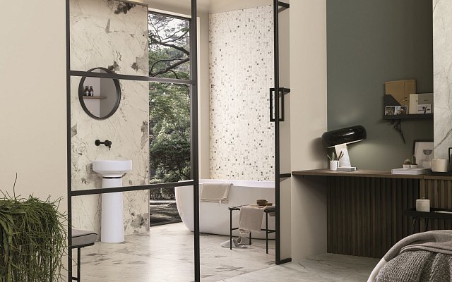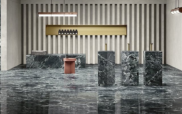 — В составе Arch Skin Design Stones есть широкоформатный керамогранит, керамогранит, мозаика с рисунками под камень, под мрамор.