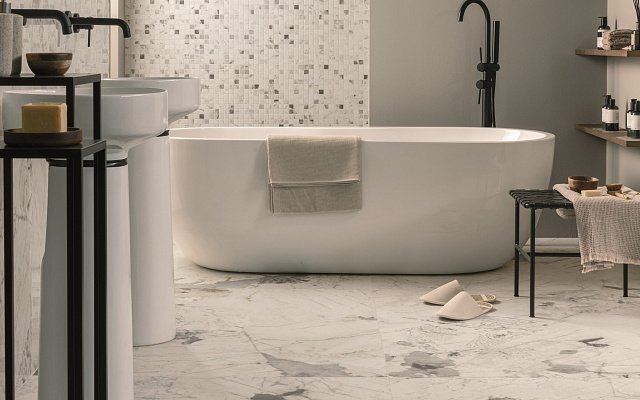 — Коллекция, а также её отдельные элементы подходят для ванной, для душа. Дизайнеры Royalstone могут составить для вас бесплатный 3D проект с использованием плитки из этой коллекции Arch Skin.