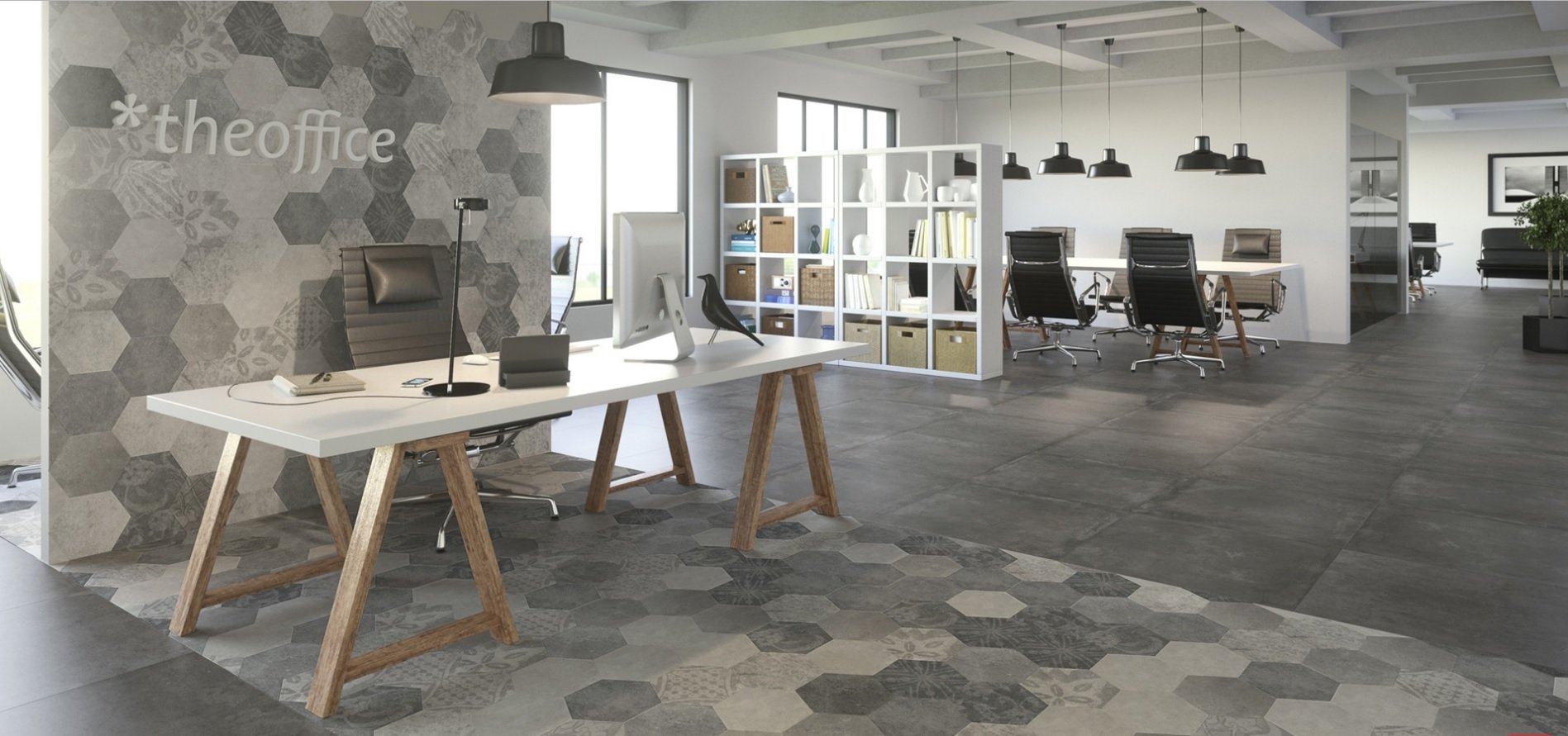 — В составе Argenta Atlas есть декоративные элементы, керамогранит, мозаика с рисунками абстракция, под бетон.