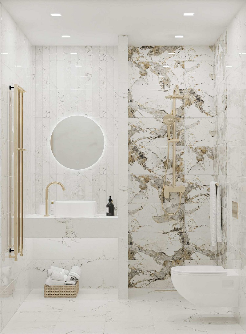 — Коллекция, а также её отдельные элементы подходят для ванной, для душа. Дизайнеры Royalstone могут составить для вас бесплатный 3D проект с использованием плитки из этой коллекции Azori.