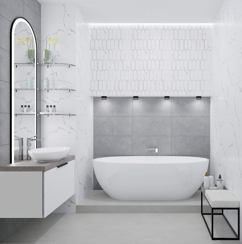 — Коллекция, а также её отдельные элементы подходят для ванной, для душа. Дизайнеры Royalstone могут составить для вас бесплатный 3D проект с использованием плитки из этой коллекции Azori.