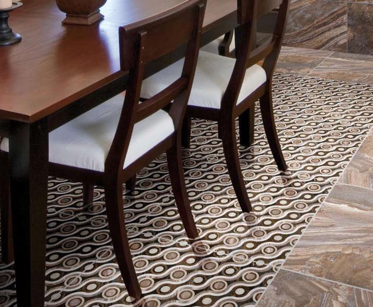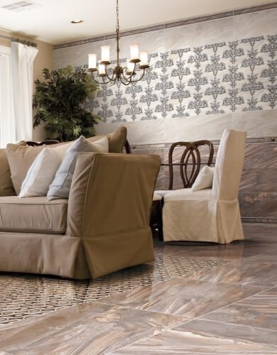 — В составе Azteca Xian есть бордюры, керамогранит, декоративные элементы, керамическая плитка, мозаика с рисунками орнамент, под мрамор, абстракция, под камень.