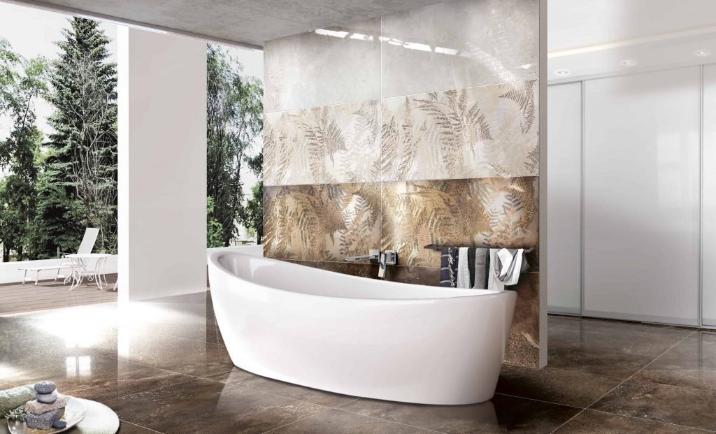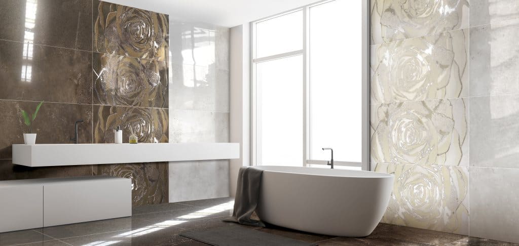 — В составе Brennero Explora есть керамогранит, керамическая плитка, декоративные элементы, мозаика с рисунками под металл, с листьями, с розами.