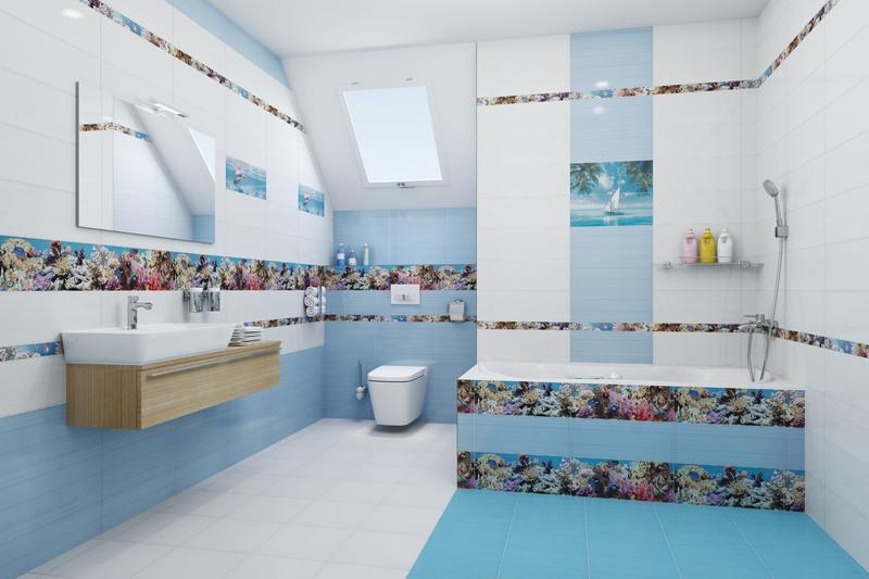 Керамическая плитка strong>Ceradim Reef станет отличным вариантом отделки ванной комнаты. Коллекция имеет глянцевую поверхность и выполнена в различных цветовых оттенках с преобладанием бело-голубых тонов. Настенная плитка