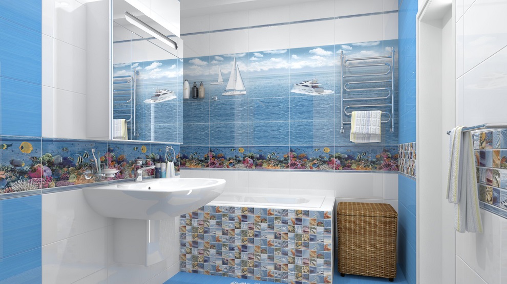 Коллекция керамической плитки Ceradim Regata станет отличным вариантом для ванной комнаты. Керамика представлена в голубом цвете. Декоративные элементы кафеля печатаются с применением современных методов компьютерной печати. Поэтому рисунки моря и парусников на них выглядят настолько реалистично. Плитка для ванной Ceradim Regata позволит визуально увеличить пространство, а мозаичные декоры, украшенные изображениями с морскими пейзажами, создадут эффект присутствия на берегу. Помимо керамики, в коллекции представлена напольная плитка Regata Ceradim. Она имеет глянцевую поверхность голубого цвета.