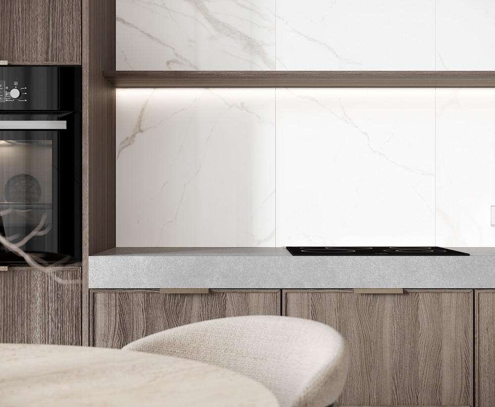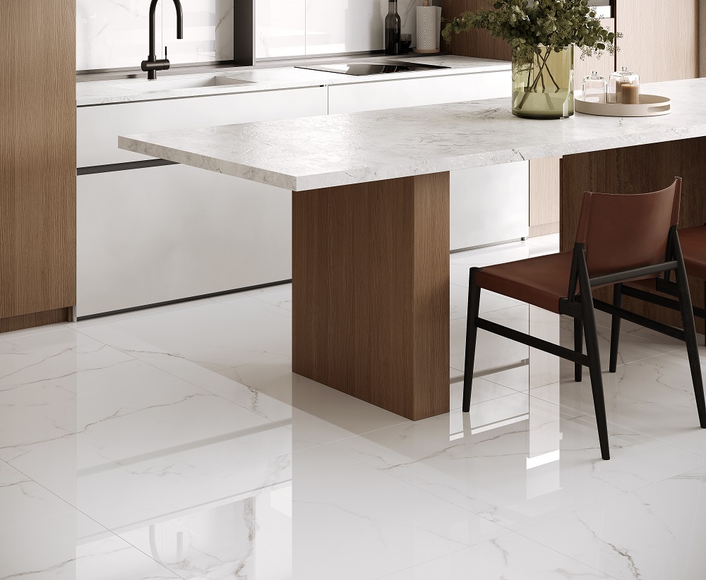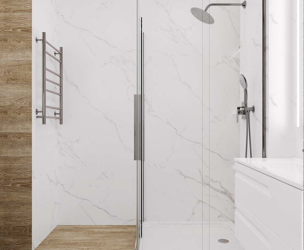 — В составе Ceradim Statuario Justice Grey есть керамогранит, мозаика с рисунками под мрамор.