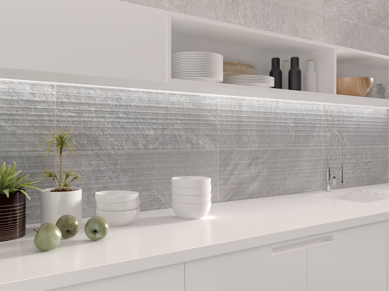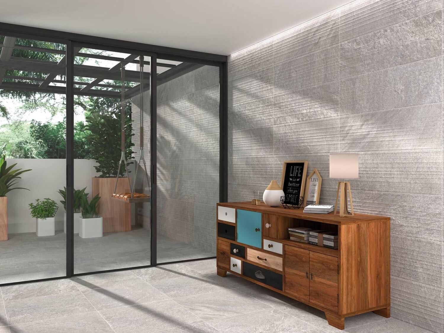 Коллекция крупноформатной матовой плитки Cifre Mirambel стилизована под натуральный камень, часть элементов представлена с полосатым рисунком. Все они выпущены в едином формате 300х900 мм. Главная особенность керамогранита для пола Cifre Mirambel заключается в цветовых решениях. Производитель выбрал бежевый и серый цвета, чтобы сделать отделку стильной, но неброской, а коллекцию – максимально универсальной. Так керамогранитную плитку можно использовать не только в современных, но и в классических интерьерах, оформляя гостиные, спальни, обеденные залы и ванные комнаты. При желании материал применяют и в отделке стен.