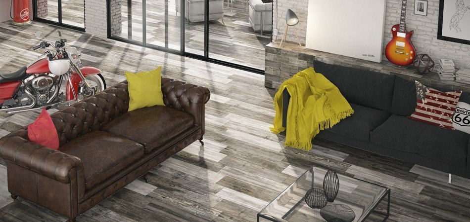 — В составе Colorker Retro есть керамогранит, мозаика с рисунками под дерево.