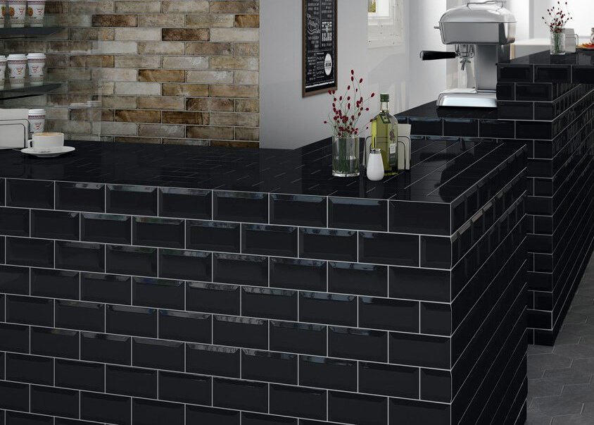 — В составе Dar Ceramics Biselado/Liso есть керамическая плитка, бордюры, мозаика с рисунками моноколор.