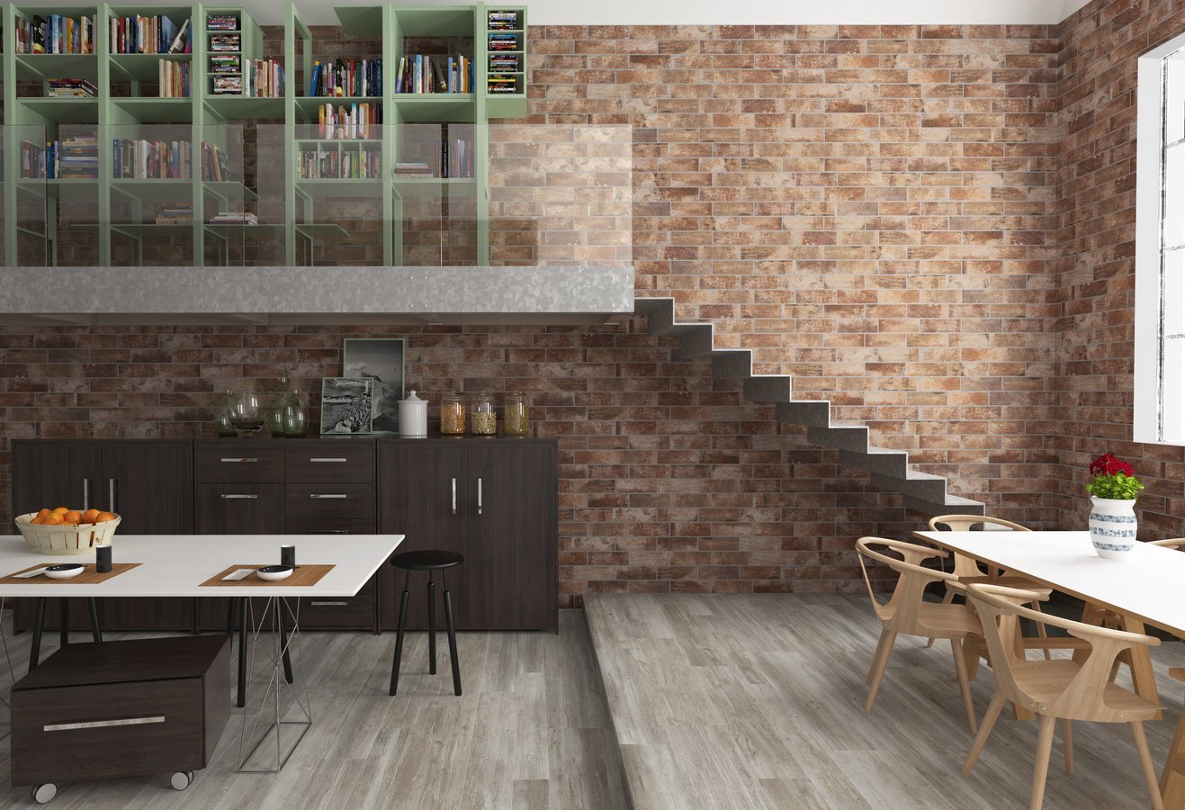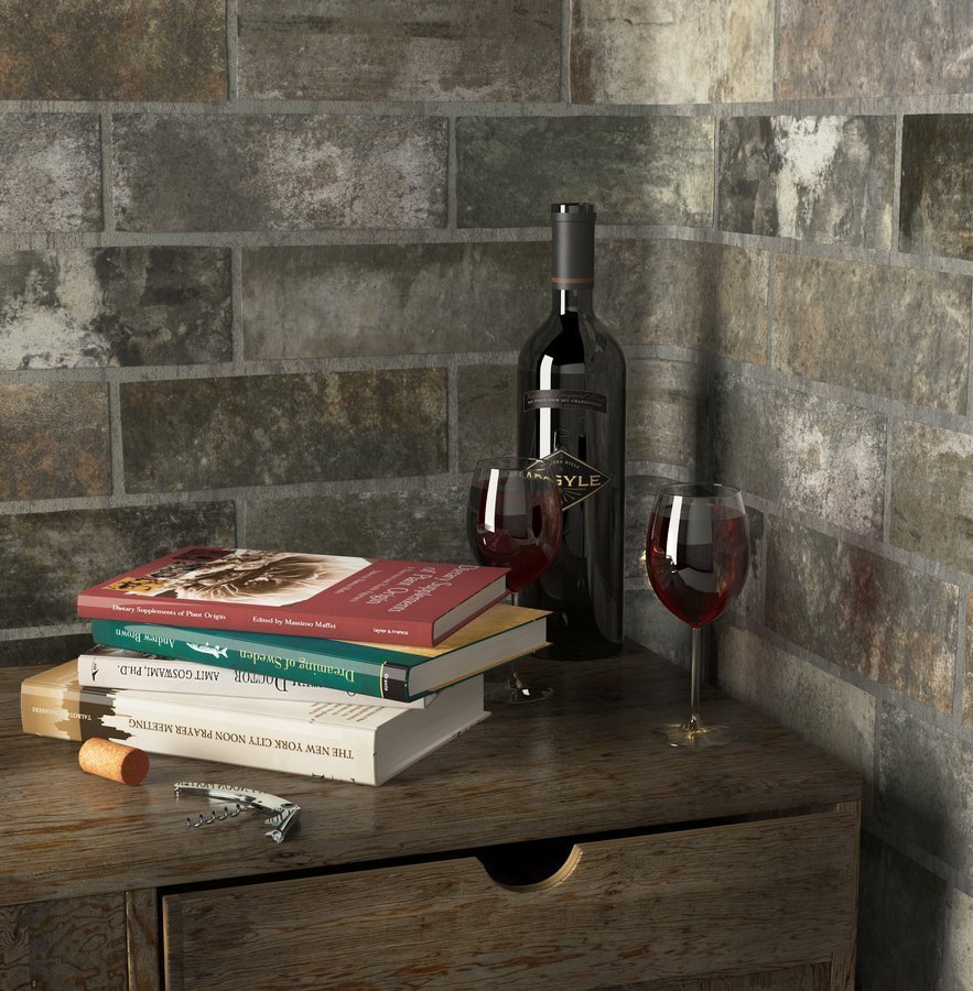 Коллекция Del Conca Cantina, в составе которой есть как высокопрочный керамогранит, так и настенная керамическая плитка, воплощает в себе элегантность и солидность. По текстуре и оттенкам материал похож на природный камень, а для создания эффекта кирпичной кладки создатели выбрали темно- и свето-серые, а также красно-коричневые оттенки. Красиво выглядит в кухнях и гостиных в стиле кантри. Плитку для стен Del Conca Cantina в формате 30 на 10 сантиметров дополняют уголки в аналогичных тонах размером 10 на 20 сантиметров, причем все составляющие элементы коллекции имеют матовую поверхность.