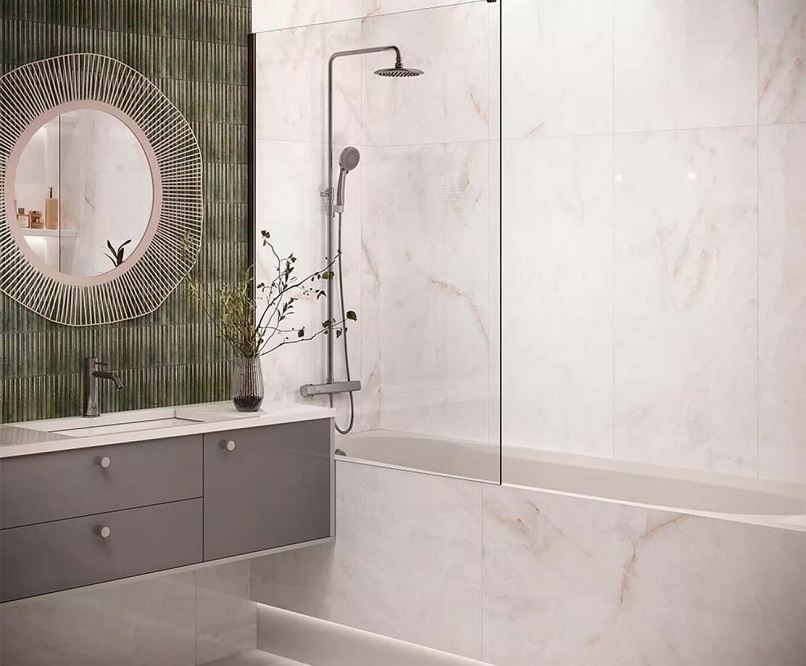 — Коллекция, а также её отдельные элементы подходят для ванной, для душа. Дизайнеры Royalstone могут составить для вас бесплатный 3D проект с использованием плитки из этой коллекции DO&PO.