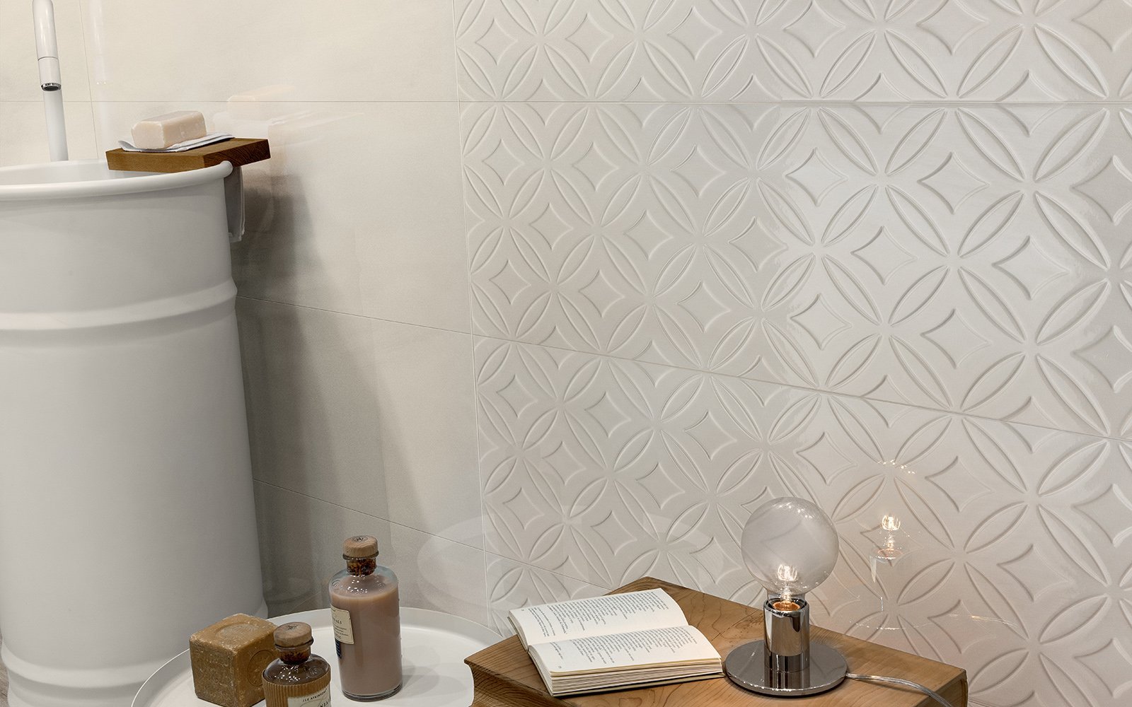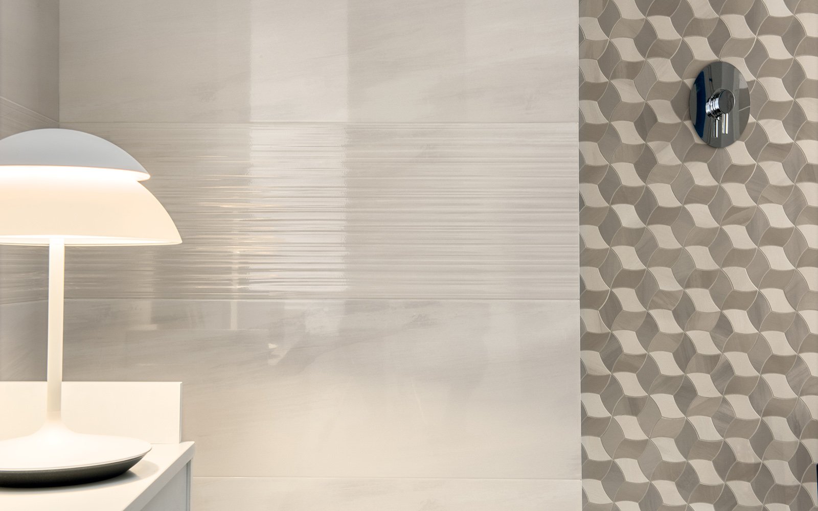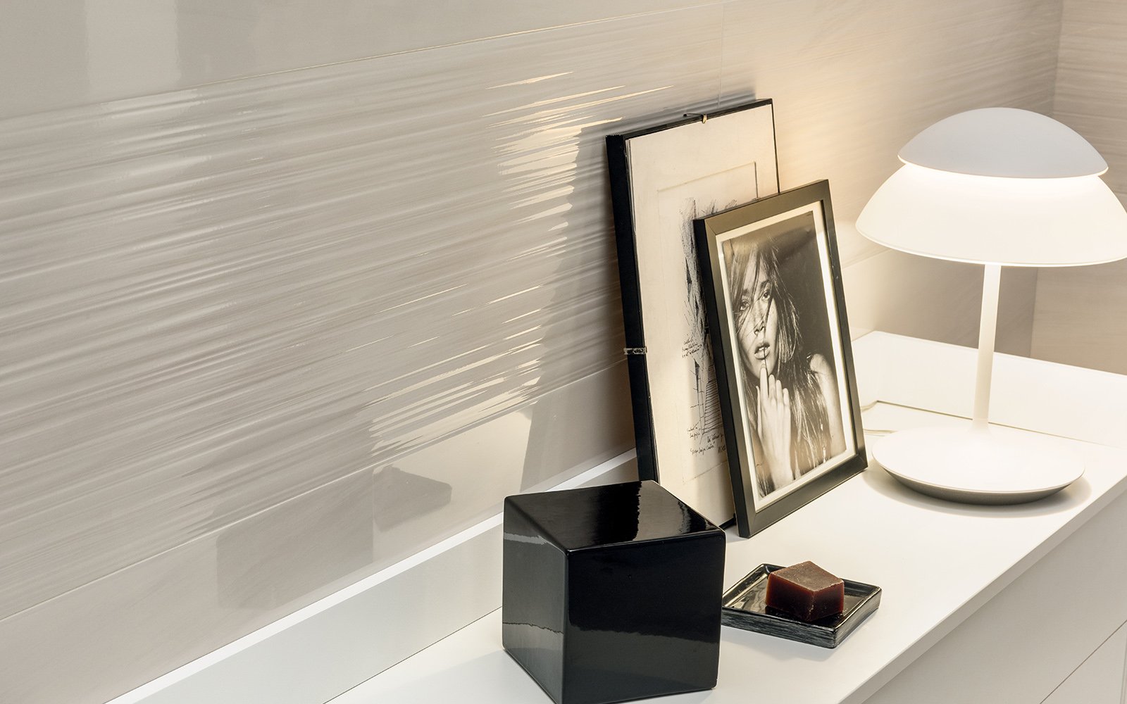 Эффектная, но предельно простая по дизайну – именно такая плитка входит в состав коллекции Dom Spotlight, привлекая ценителей оригинальных вариантов интерьерной отделки. Цветовой спектр включает различные тона белого, серого и айвори, которые добавляют изысканности, тогда как глянцевый блеск сразу привлекает к поверхности внимание. Кроме плитки размером 33,3 на 100 сантиметров в наличии идентичные по расцветкам и рисунку бордюры формата 1 на 33,3 сантиметра, с помощью которых можно обустроить переход от пола к стенам. Лучше всего подходит плитка Dom Spotlight для гостиных и ванных комнат.