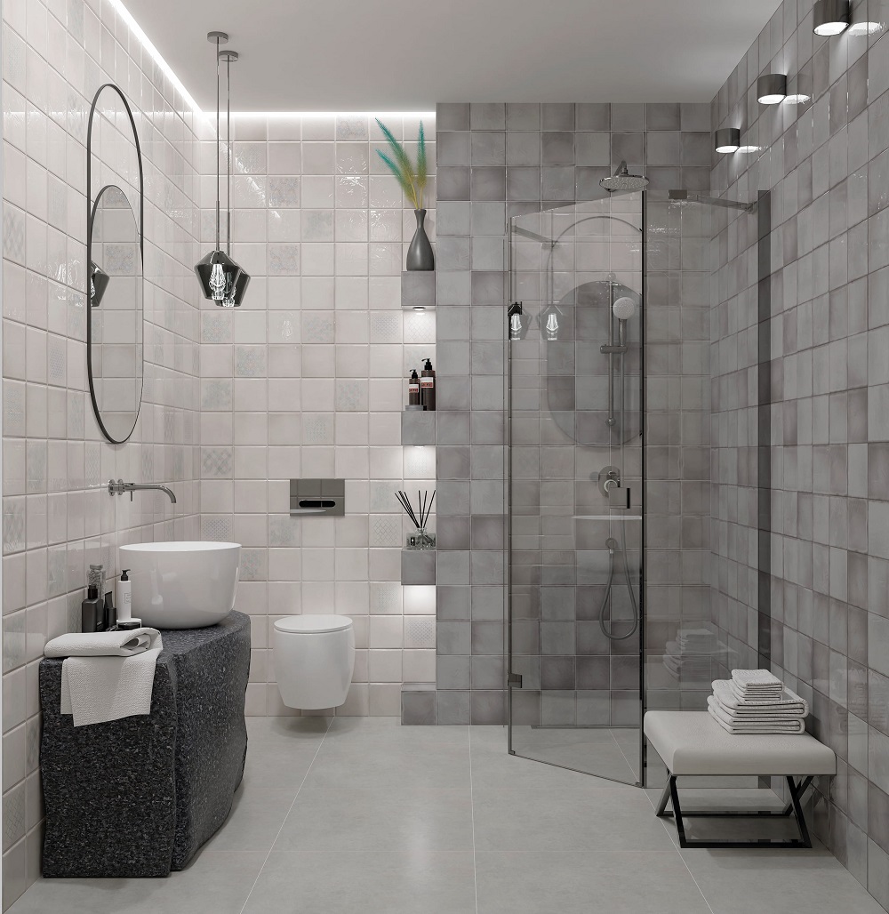 — Коллекция, а также её отдельные элементы подходят для ванной, для душа. Дизайнеры Royalstone могут составить для вас бесплатный 3D проект с использованием плитки из этой коллекции Eletto Ceramica.