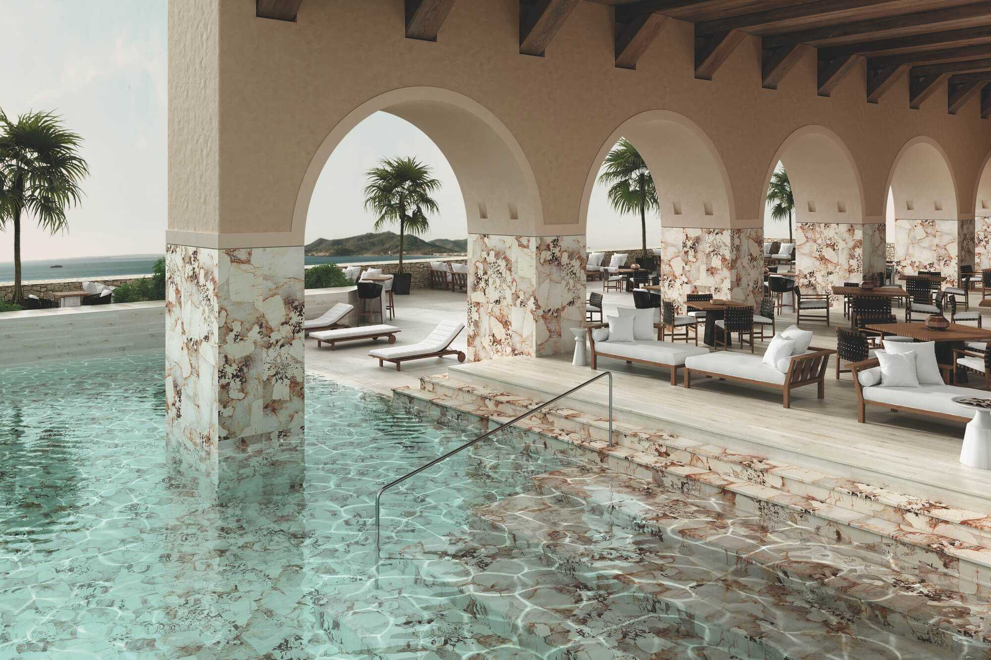 — Коллекция, а также её отдельные элементы подходят для ванной, для душа. Дизайнеры Royalstone могут составить для вас бесплатный 3D проект с использованием плитки из этой коллекции Exagres.