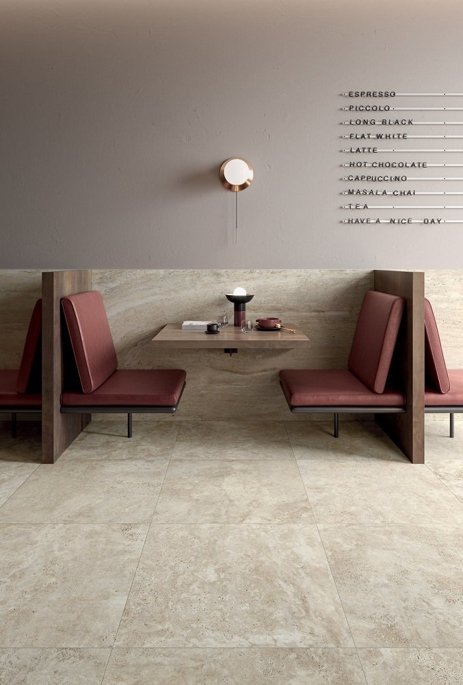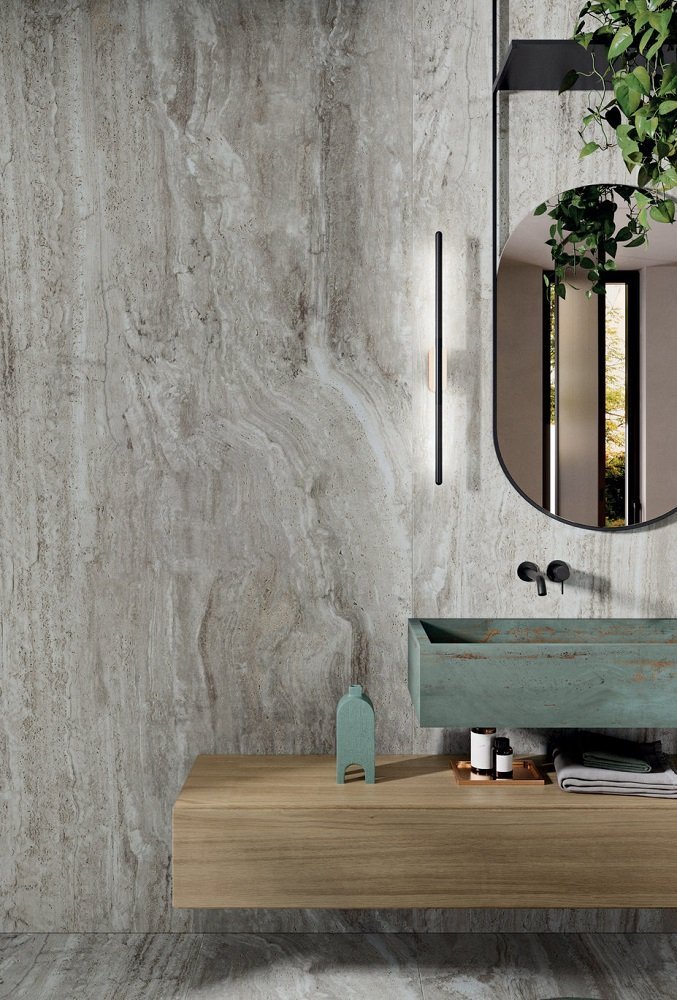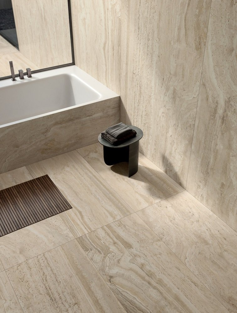 — В составе Flaviker Navona есть керамогранит, широкоформатный керамогранит, декоративные элементы, бордюры, ступени, мозаика, мозаика с рисунками под травертин.