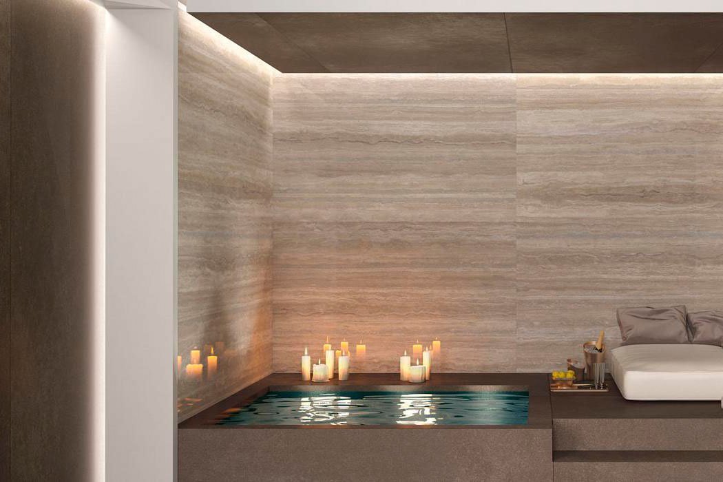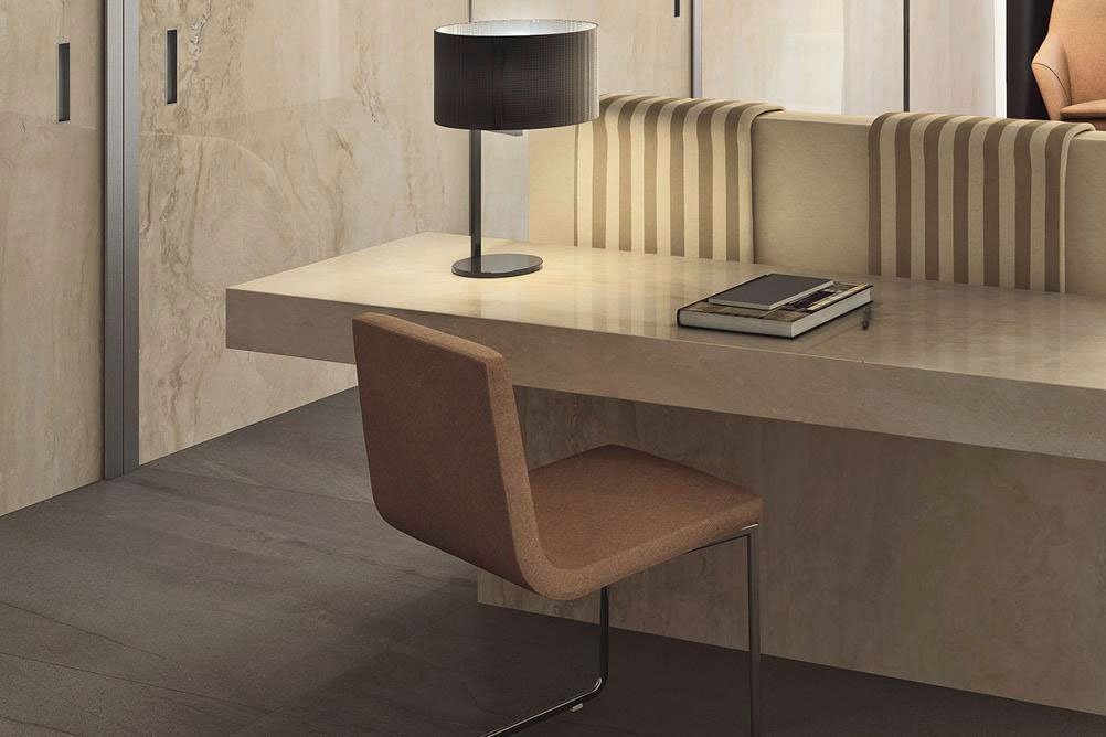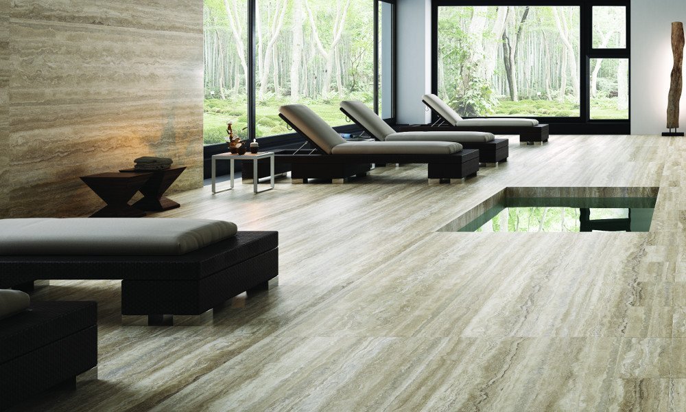 Коллекция Fmg Travertino Maxfine включает в себя керамогранит с лаппатированным и матовым типом поверхности и радует большим количеством форматов, а именно – 150 на 150 сантиметров, 150 на 300 сантиметров, 37,5 на 37,5 см, 75х75 см и 75 н 150 см. Выглядит материал как бежевый или светло-бежевый травертин, при этом весит меньше и имеет надежную защиту от неблагоприятных внешних факторов. Укладка плитки для пола и стен Fmg Travertino Maxfine займет принципиально меньше времени и потребует меньше денег, чем каменная облицовка, а визуальный эффект будет идентичный, поэтому выбор в пользу керамогранита очевиден.