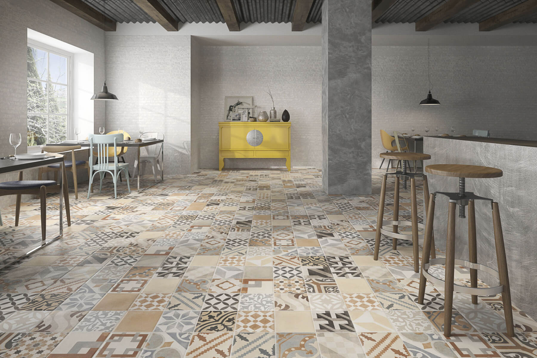 Коллекция Geotiles Vintage от испанского производителя Geotiles отличается надежностью, прочностью и в то же время легкостью каждого элемента. Главными особенностями являются стойкость к механическому воздействию, устойчивость к сильным перепадам температуры, а также к применению химических веществ. Плитка для пола Geotiles Vintage имеет матовую поверхность, что говорит о наличии противоскользящего эффекта. Благодаря разноцветному абстрактному изображению данная керамическая плитка станет прекрасным дополнением вашего дизайнерского интерьера, независимо от стиля.