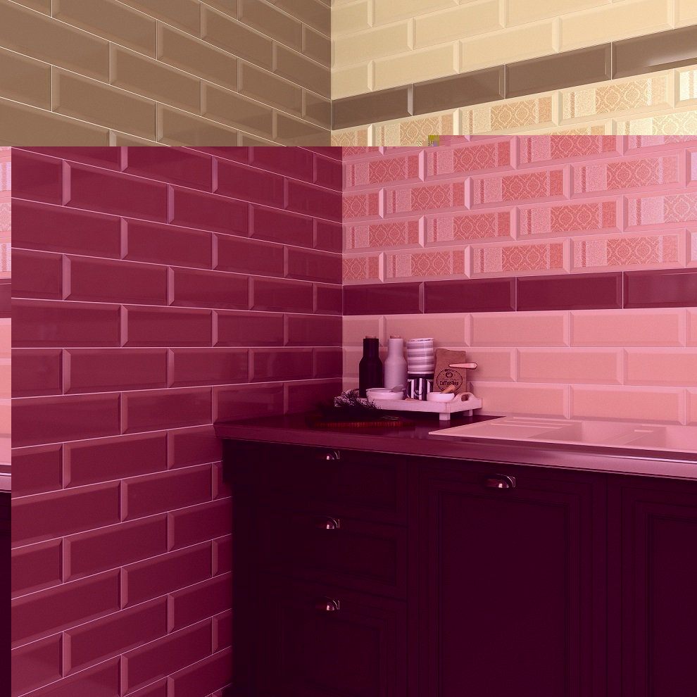 — В составе Gracia Ceramica Metro есть декоративные элементы, керамическая плитка, мозаика с рисунками узор, орнамент, с цветами, моноколор.