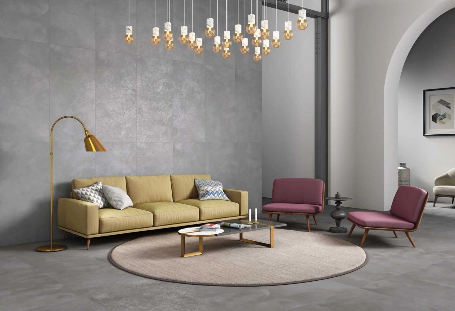 — В составе Gravita Bondford есть керамогранит, мозаика с рисунками под бетон.