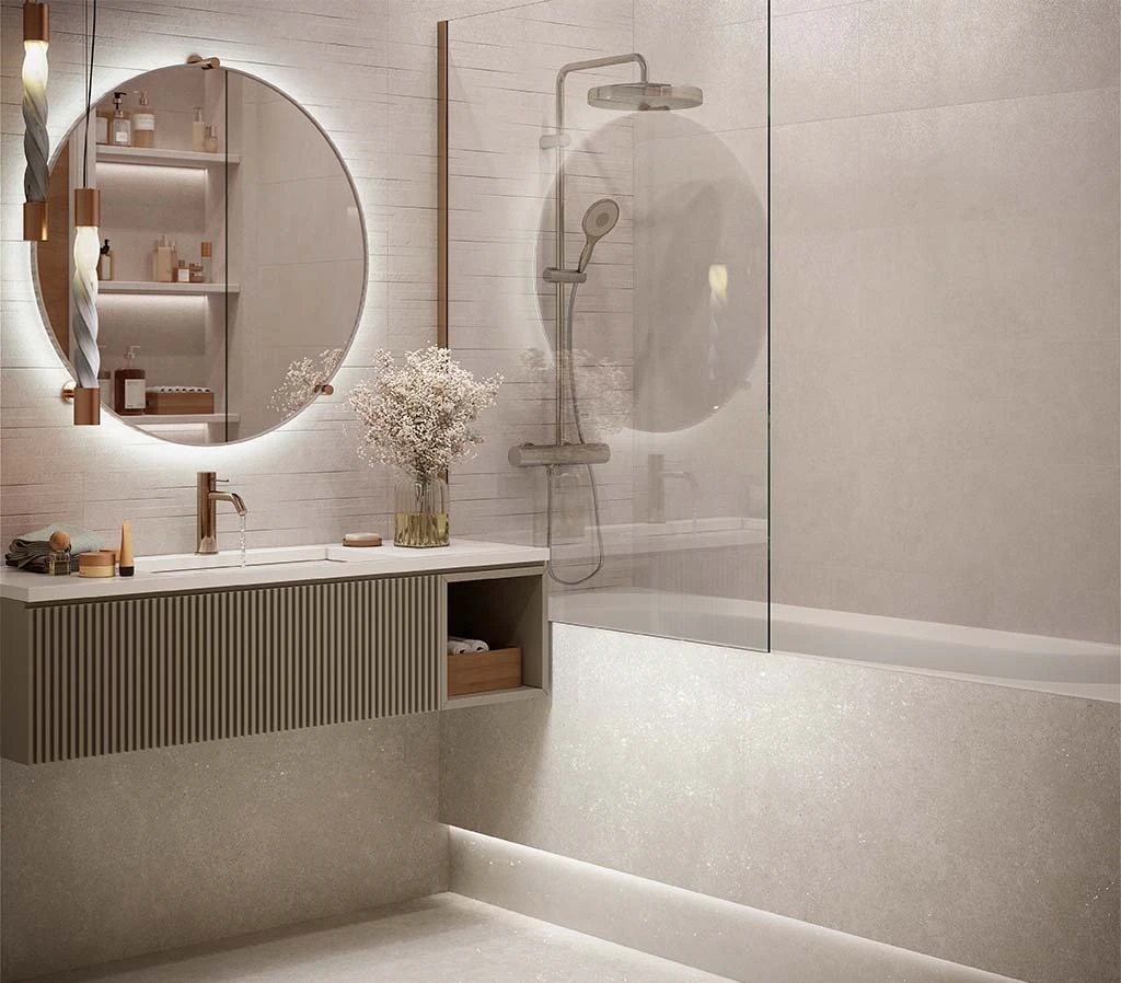 — Коллекция, а также её отдельные элементы подходят для ванной, для душа. Дизайнеры Royalstone могут составить для вас бесплатный 3D проект с использованием плитки из этой коллекции Gravita.