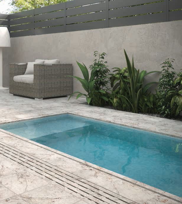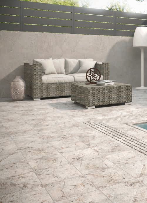 Керамогранитная плитка из коллекции Rocks очень красивая сама по себе и может использоваться для наружной/внутренней укладки. Она представлена в трех цветах, имеет гладкую матовую поверхность, стилизованную под камень. Но главное не это, а декоративные элементы, на которых пусть и не сильно, но виднеются очень красивые узоры. По размеру они такие же, как и базовые пластины. Также имеются фронтальные и угловые ступени разных цветов. Все элементы Rocks не скользящие.