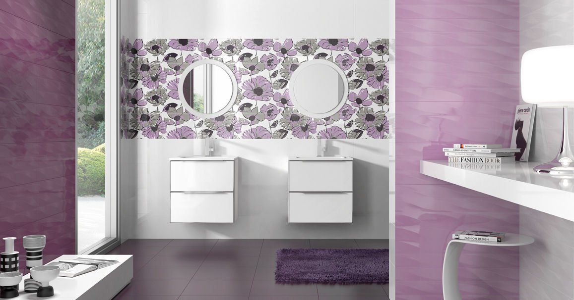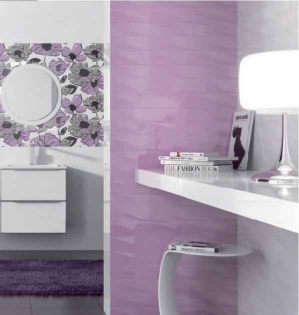 Легкий и нежный интерьер ванной комнаты позволит создать стильная и современная коллекция керамической плитки Grespania Mistral. Она предлагается в моноколоре и с волнообразной поверхностью, имеет глянцевое покрытие, оформлена в белом и фиолетовом цвете. В роли декора выступает плитка с изображениями цветов. В коллекции Grespania Mistral присутствуют варианты и для стен, и для пола, это видно на фото в каталоге. Цена квадратного метра материала колеблется в границах среднего сегмента.