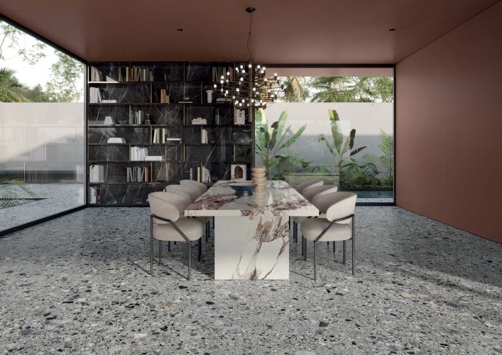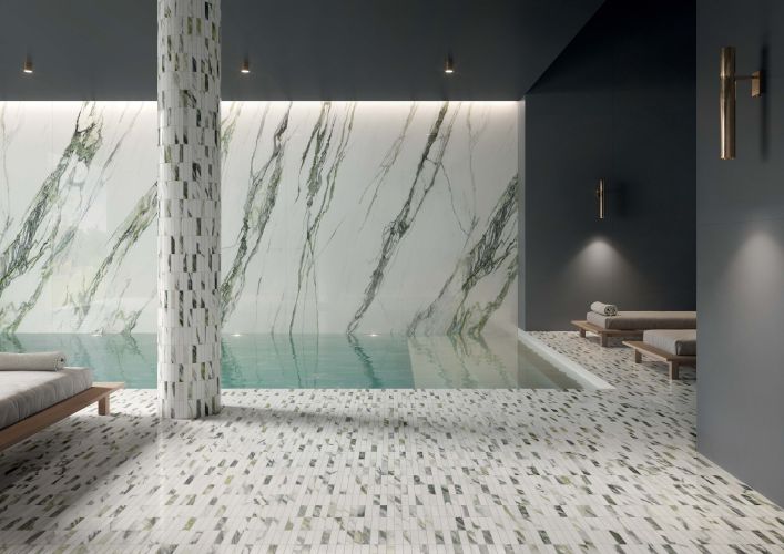 — В составе Impronta (Italgraniti) Charm Experience есть керамогранит, широкоформатный керамогранит, мозаика с рисунками под камень, под мрамор.