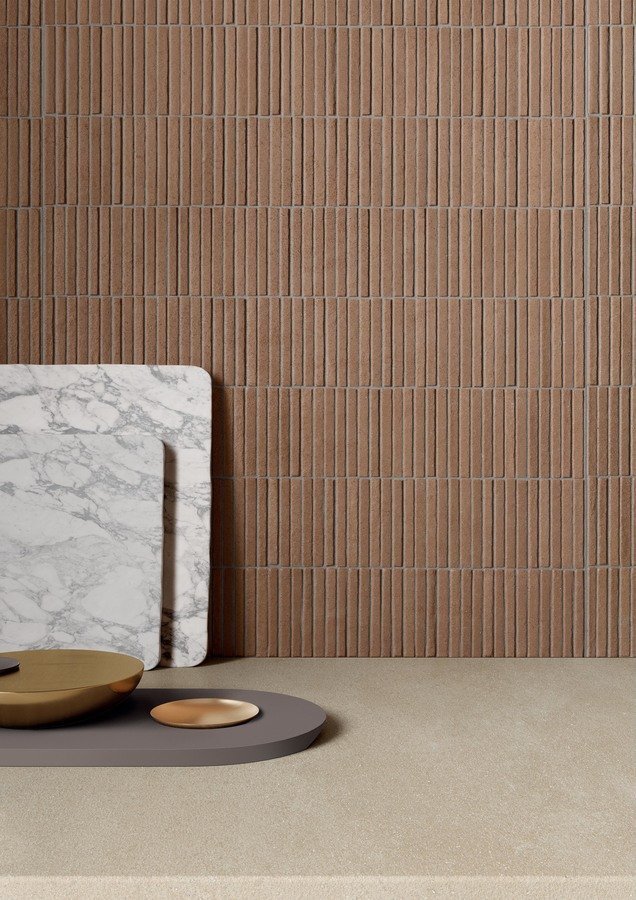 — В составе Impronta (Italgraniti) Terre есть керамогранит, декоративные элементы, мозаика, бордюры, ступени, мозаика с рисунками под бетон.