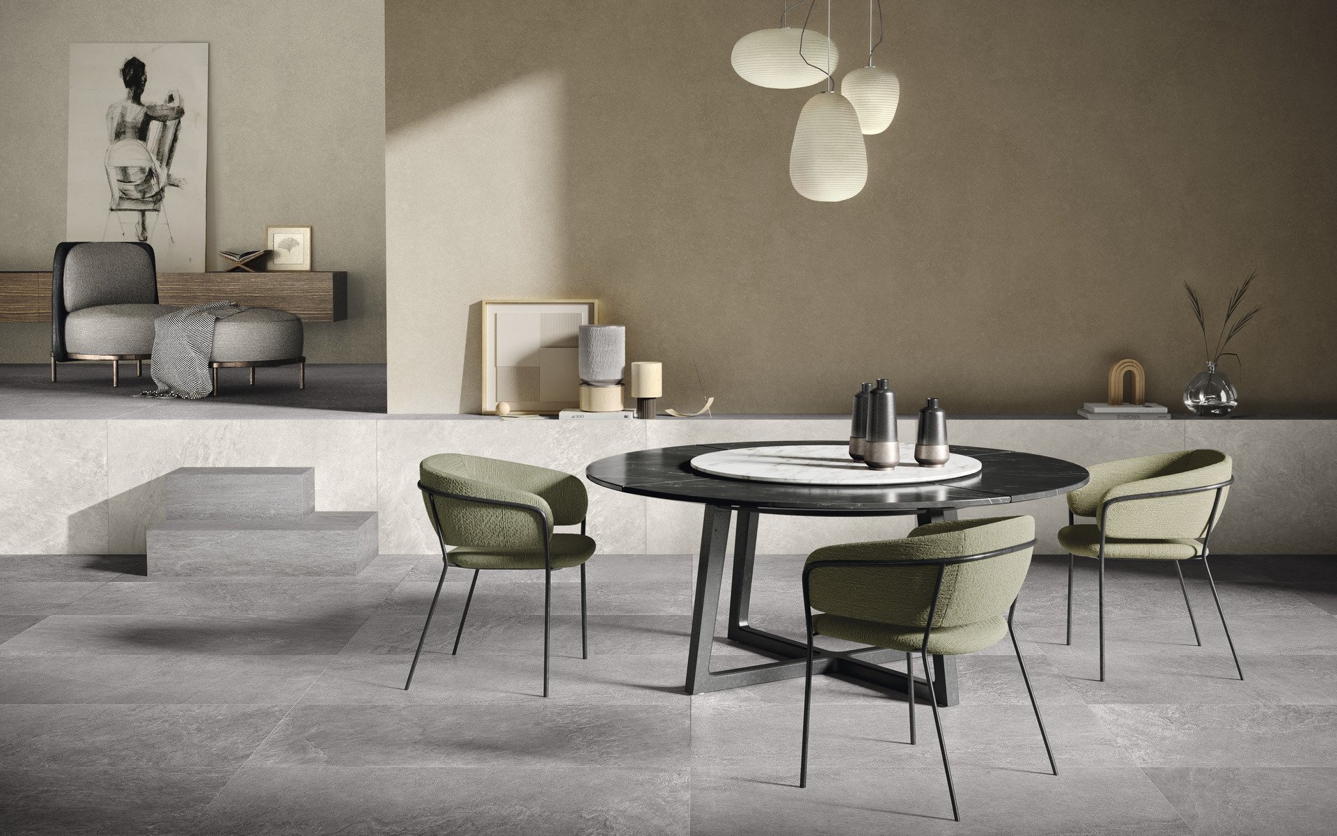 — В составе Iris Pietra Di Bilbao есть керамогранит, мозаика, мозаика с рисунками под камень.