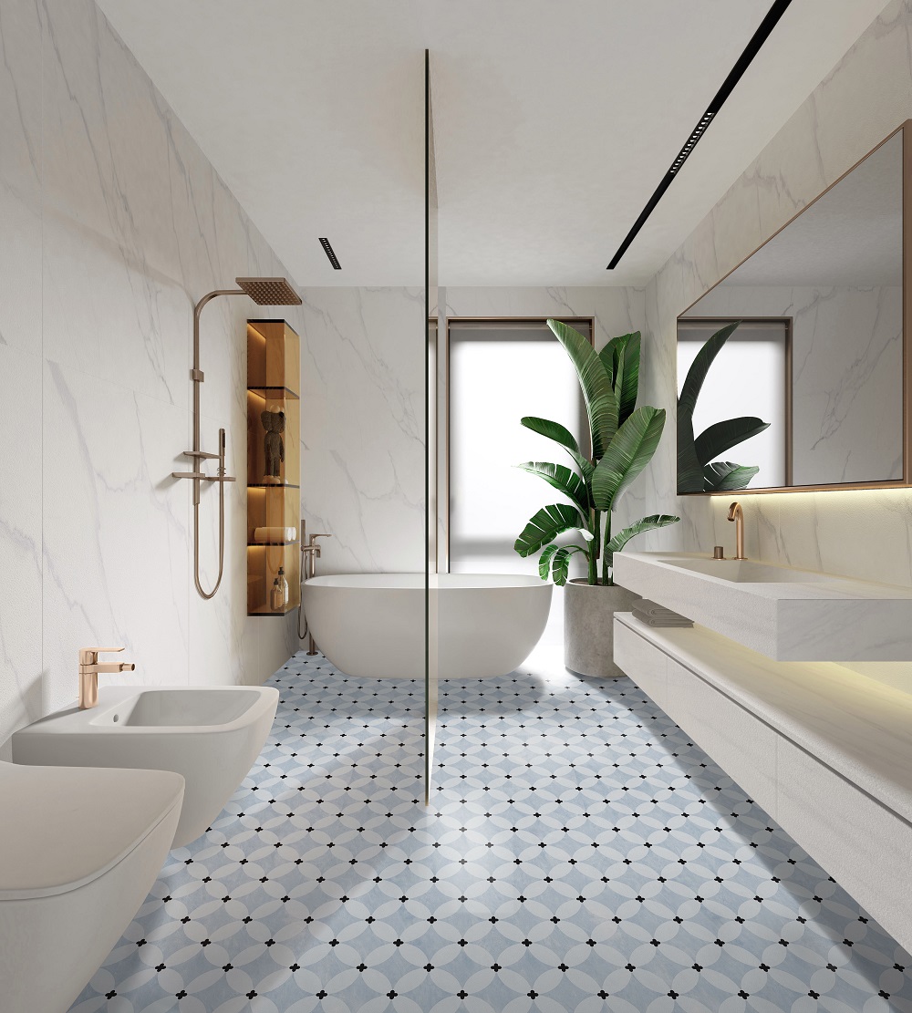 — Коллекция, а также её отдельные элементы подходят для ванной, для душа. Дизайнеры Royalstone могут составить для вас бесплатный 3D проект с использованием плитки из этой коллекции ITC.