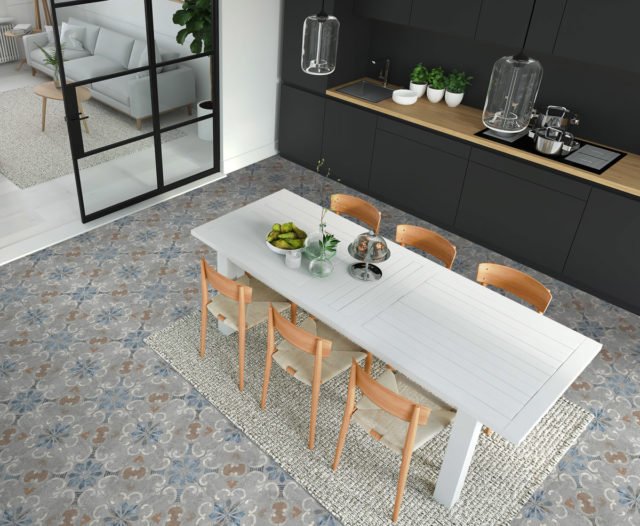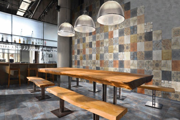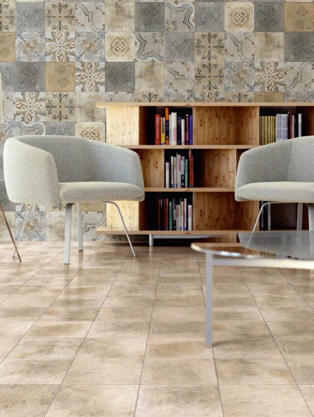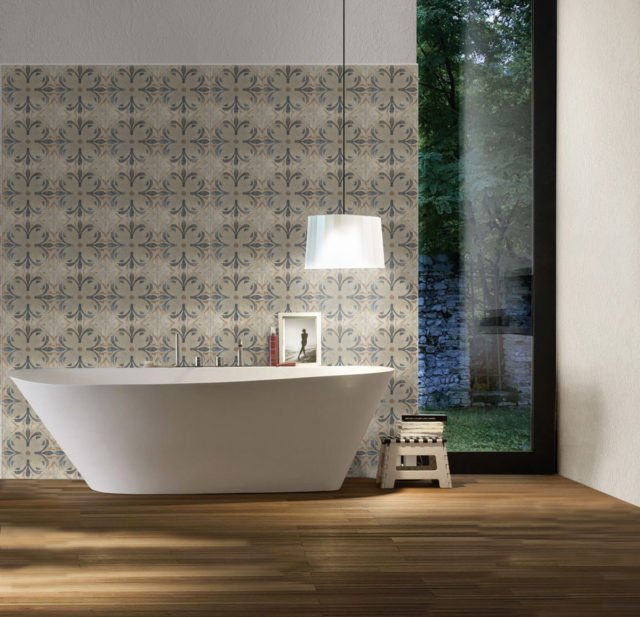 — В составе Keradom Cascine есть керамогранит, мозаика с рисунками под камень, узор.