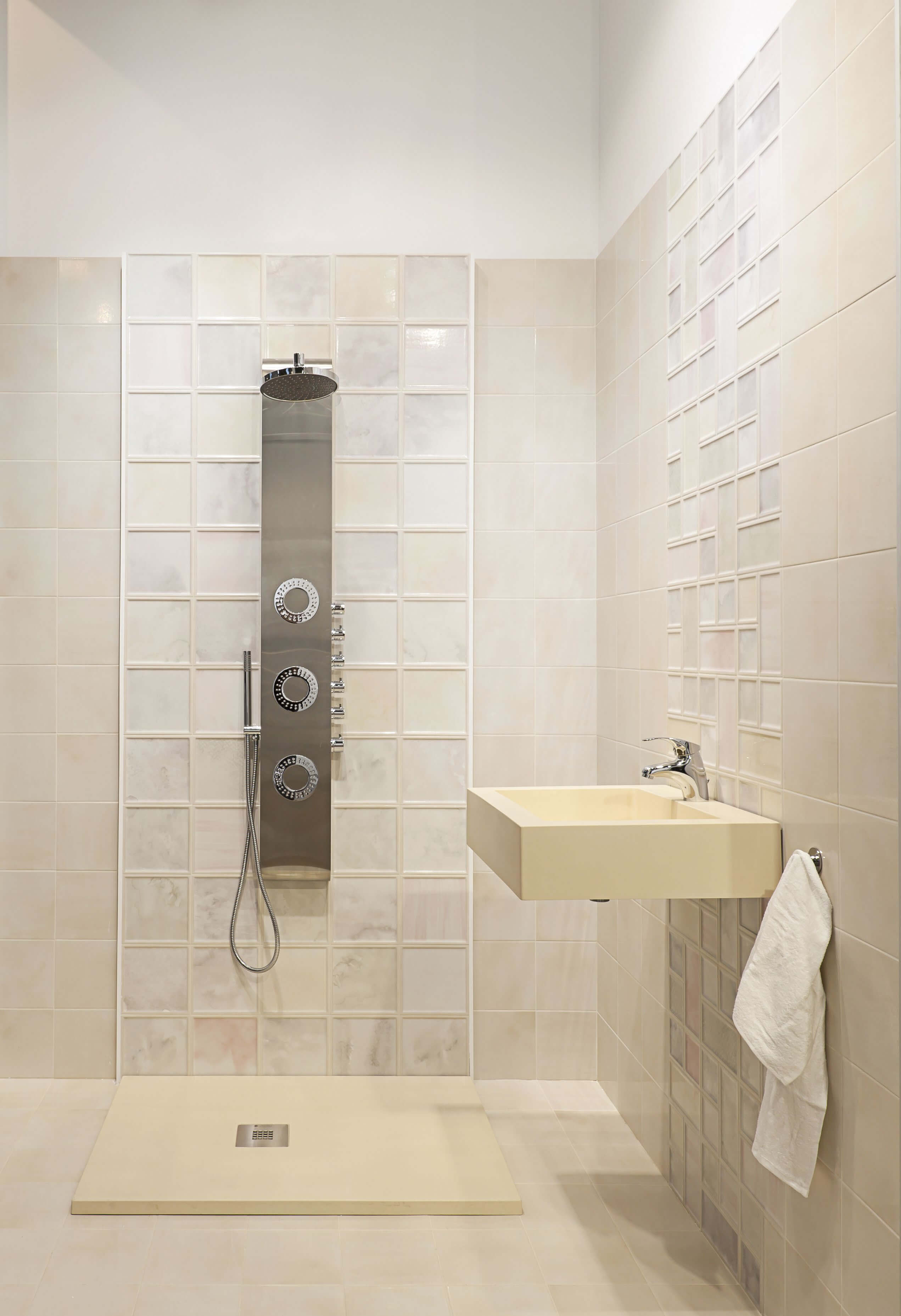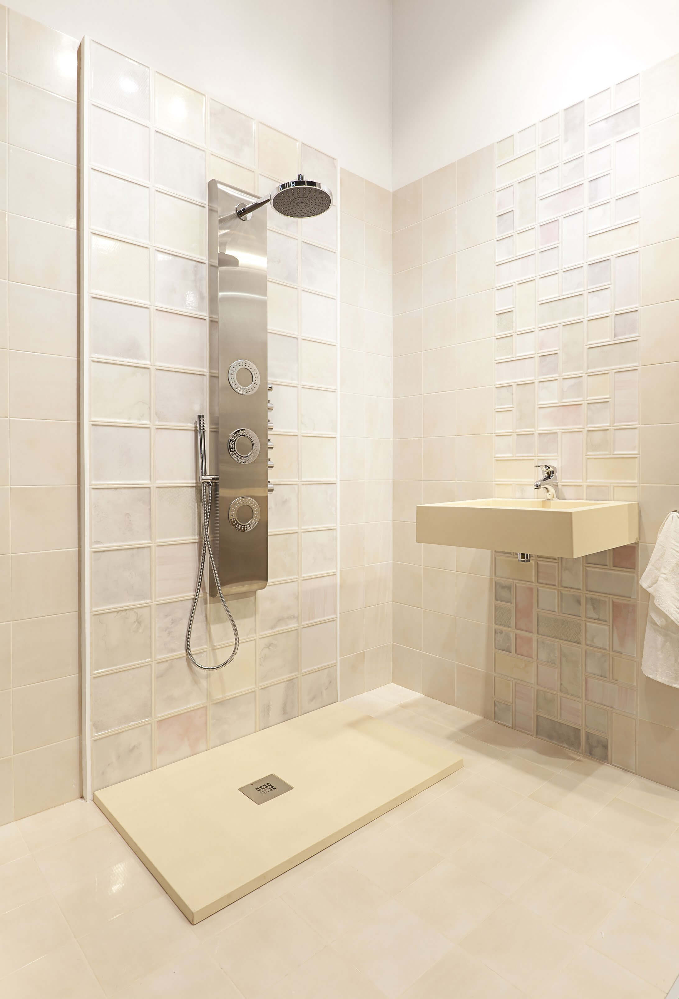 Испанская плитка из коллекции Keramex Beauty станет изюминкой в дизайне вашей ванной комнаты или санузла. Стандартный размер изделий данной коллекции составляет 20х20 см, а глянцевая поверхность придает интерьеру комнаты роскошь, но в то же время может превосходно выглядеть в минималистическом стиле. Плитка для ванной комнаты имеет три различных расцветки: бежевая, разноцветная и серая цветовая гамма. Общей особенностью всех моделей Keramex Beauty являются пастельные тона, которые, бесспорно, добавят нежности и изысканности в ваш интерьер.