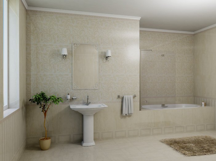 Керлайф Orosei – керамическая плитка для отделки стен и пола ванных комнат. Материал отлично справляется с температурными перепадами и повышенной влажностью, поэтому можно смело говорить о его долговечности. На фото в каталоге видно, что керамическая плитка Керлайф Orosei имеет матовую поверхность с рисунком травертин. Отличным дополнением к коллекции идут декоративные элементы с геометрическим и узорным рисунком.