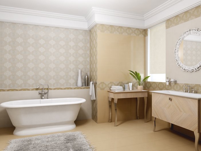 Керлайф Victoria – потрясающая коллекция настенной керамической плитки от российского производителя. Материал обладает матовой поверхностью с текстильным рисунком. Коллекцию удачно дополняют декоративные элементы с орнаментным рисунком и бордюры. На фото в каталоге можно увидеть, что керамическая плитка Керлайф Victoria используется для отделки ванных комнат в современном интерьере. Обладает отличными качественными характеристиками и очень привлекательным внешним видом.