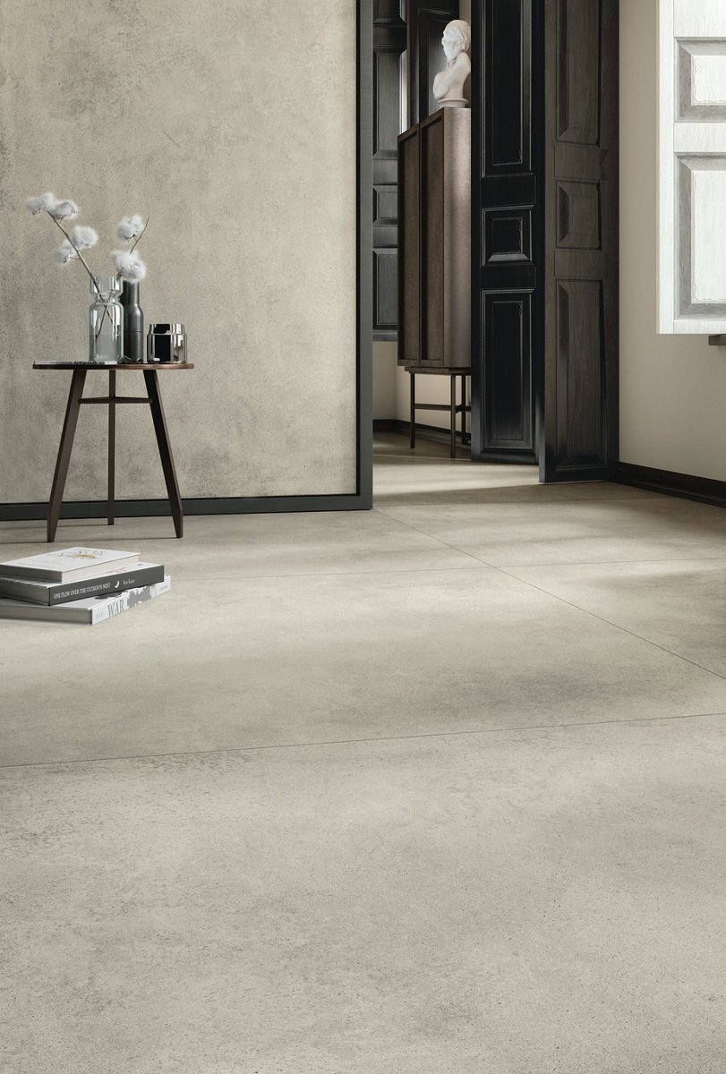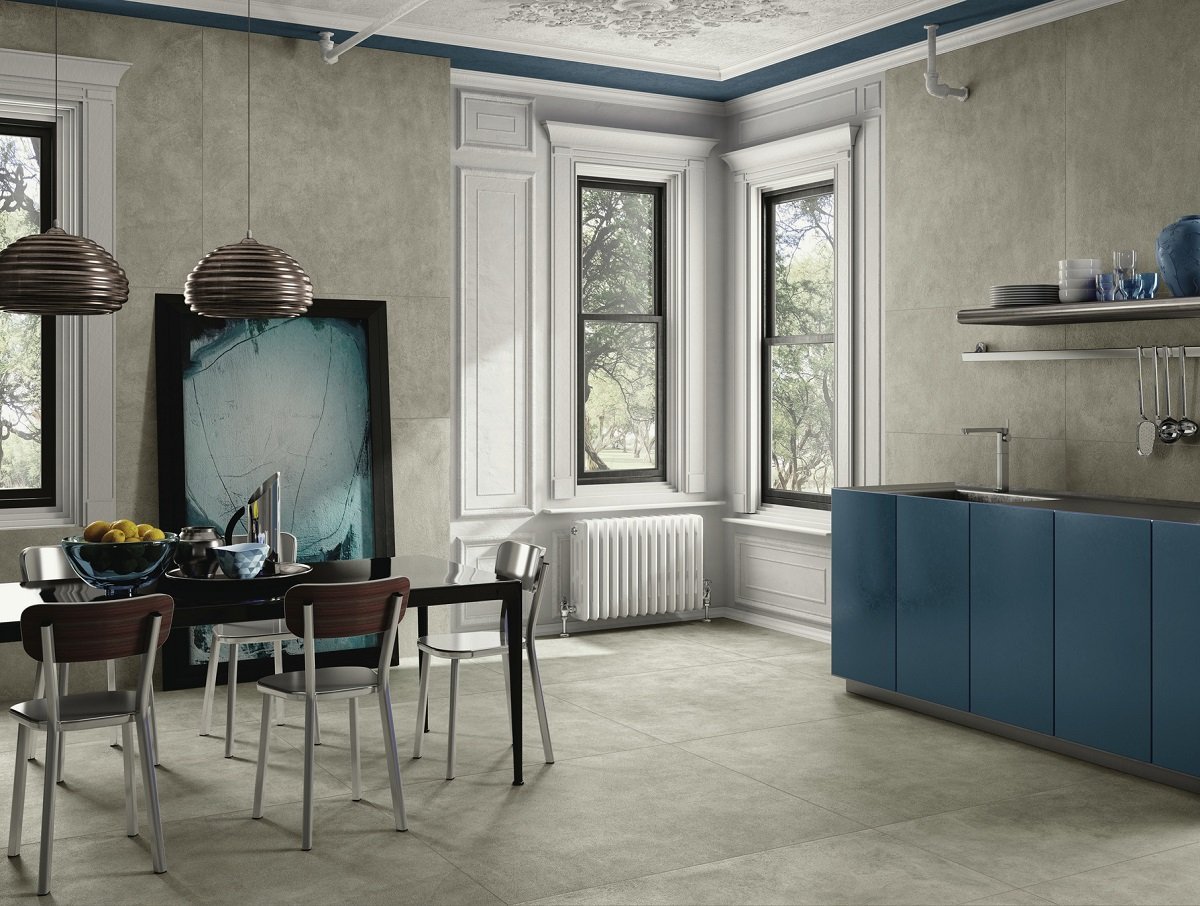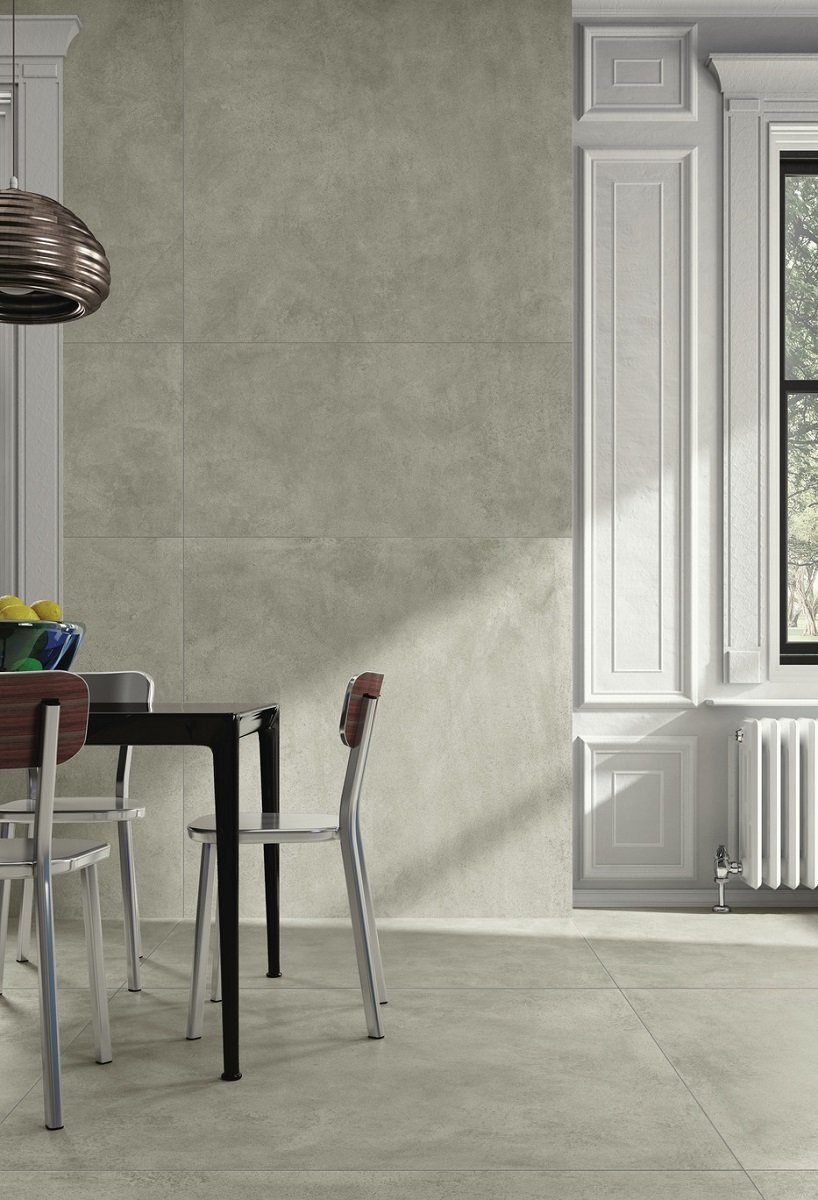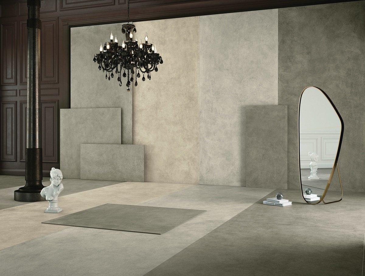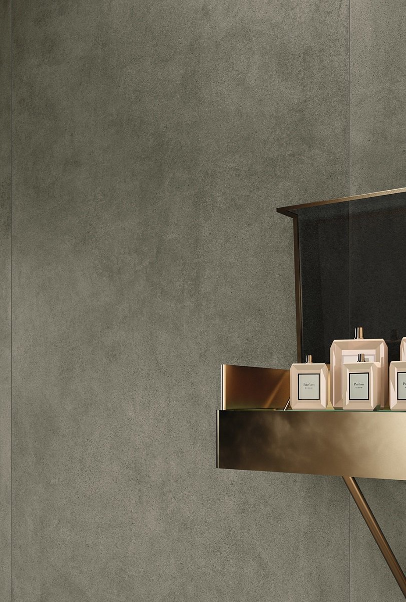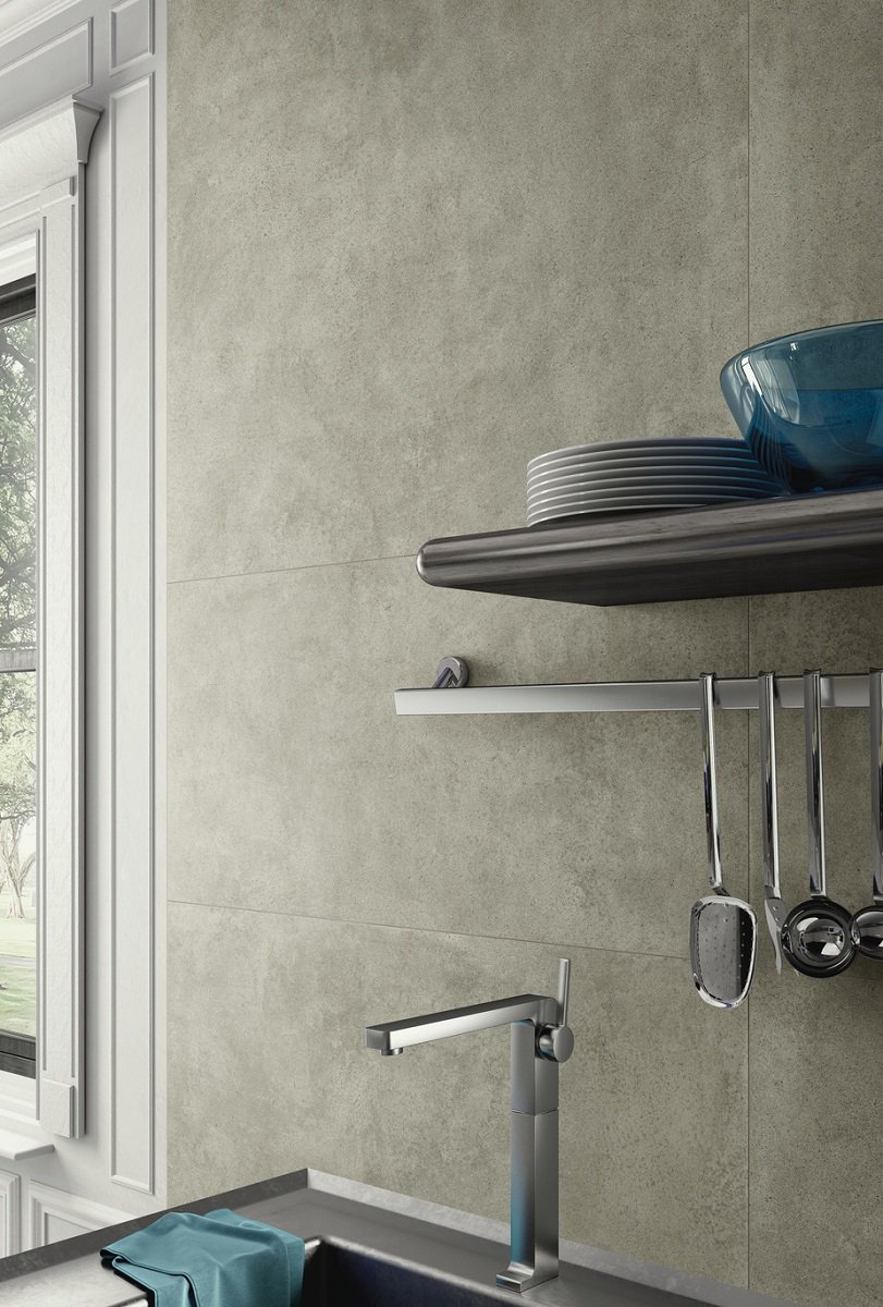 — В составе Kerlite (Cotto d'Este) Grunge есть широкоформатный керамогранит, керамогранит, мозаика с рисунками под бетон.
