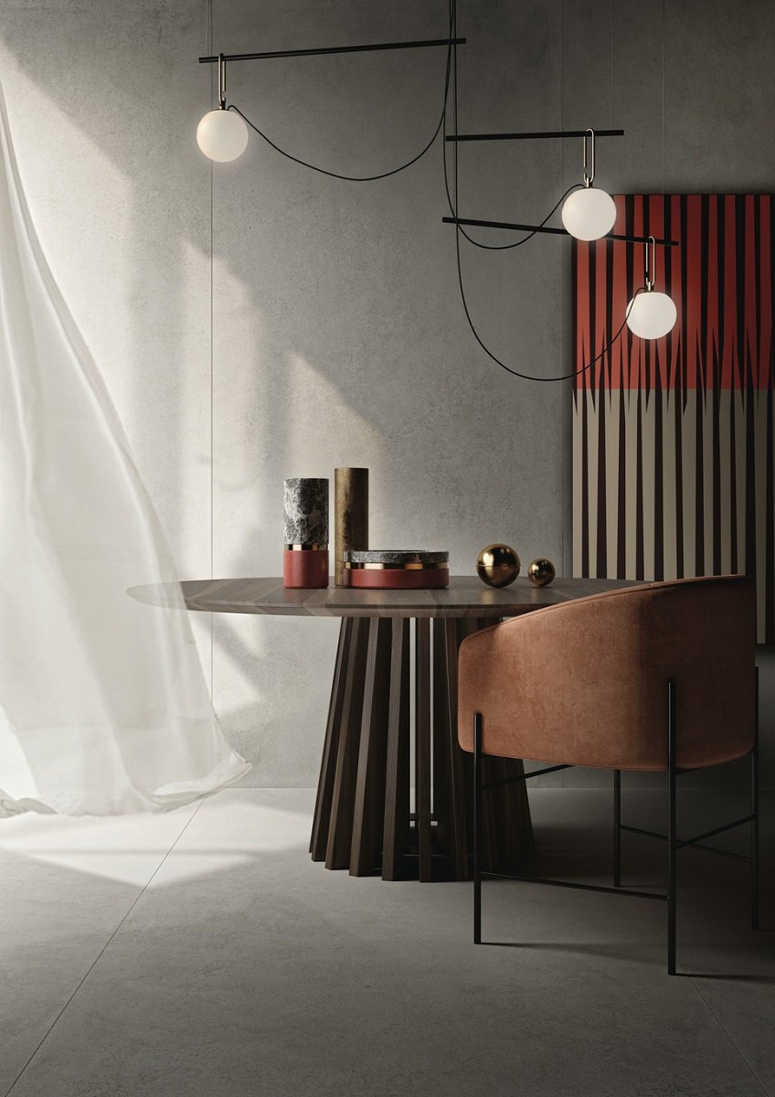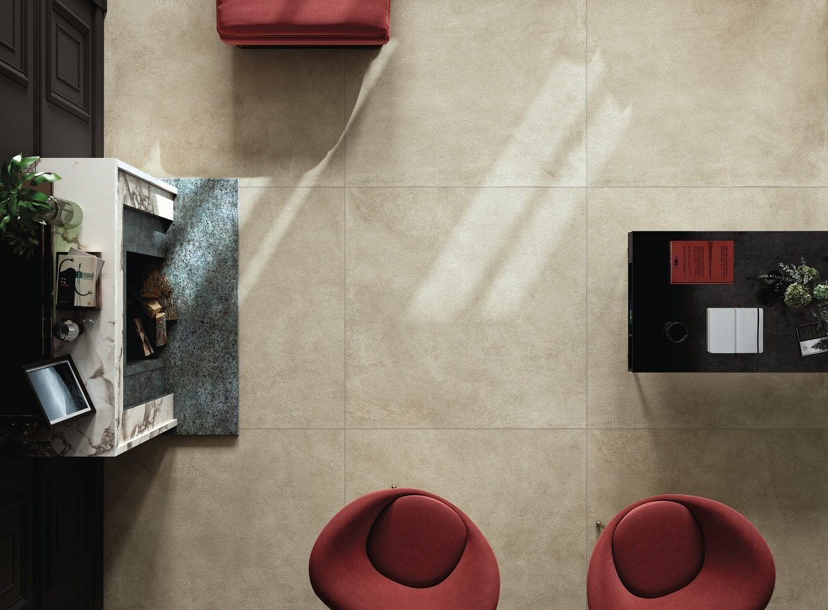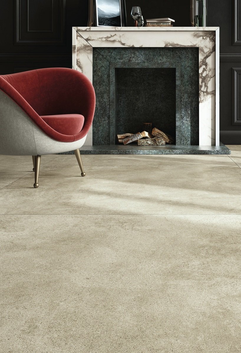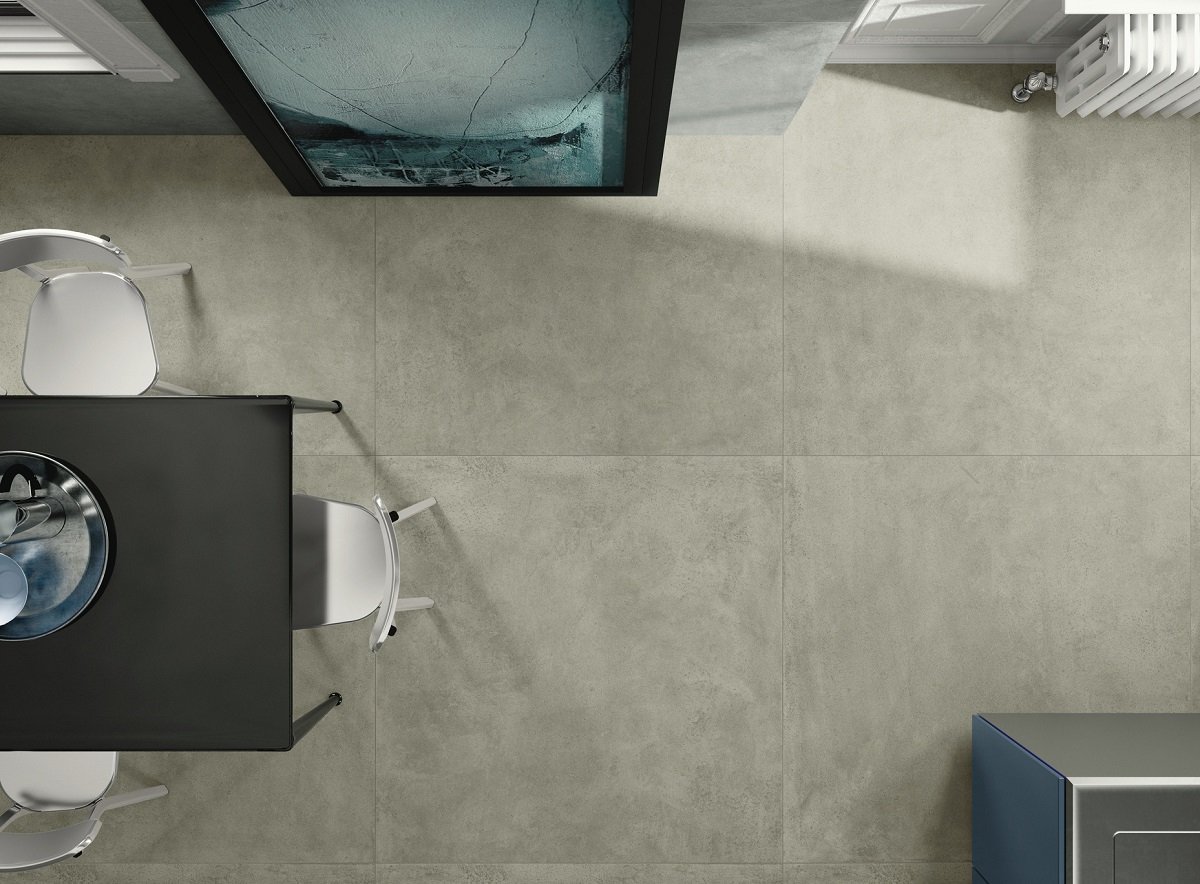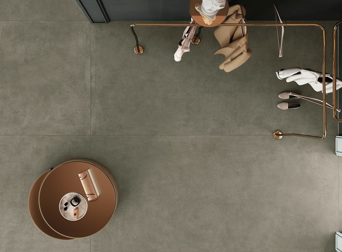 — В составе Kerlite (Cotto d'Este) Grunge есть широкоформатный керамогранит, керамогранит, мозаика с рисунками под бетон.