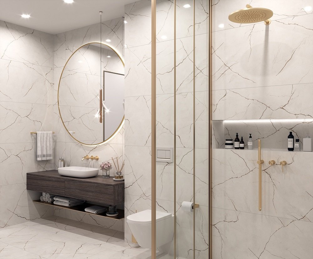 — В составе Laparet Alice Crema есть керамогранит, мозаика с рисунками под мрамор.