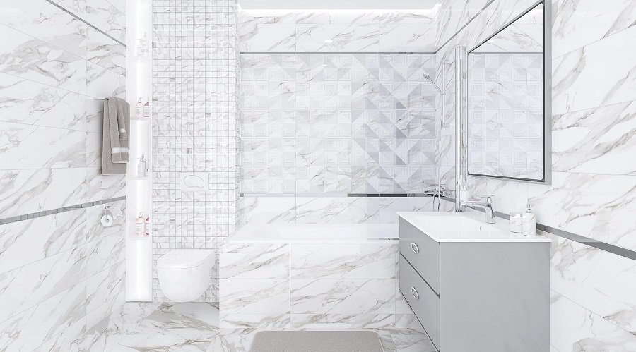 — Коллекция, а также её отдельные элементы подходят для ванной, для душа. Дизайнеры Royalstone могут составить для вас бесплатный 3D проект с использованием плитки из этой коллекции Laparet.