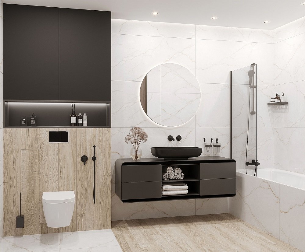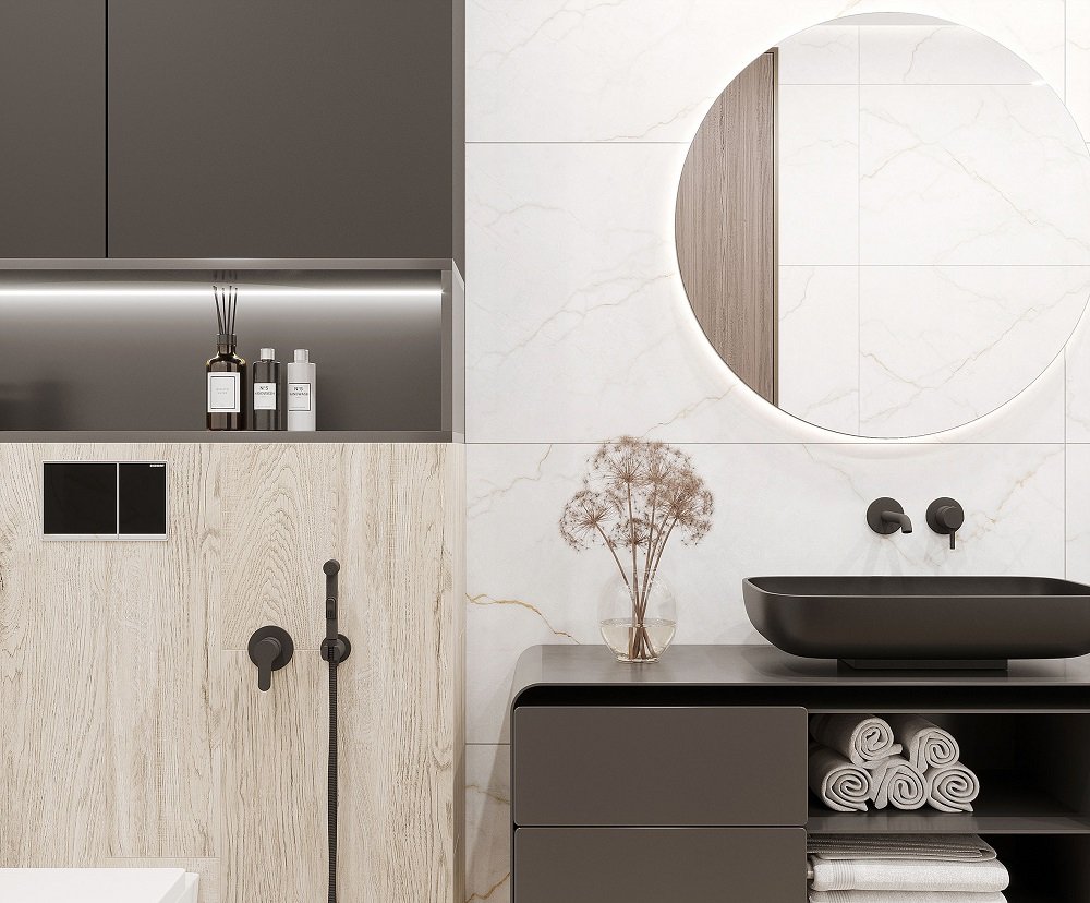 — Коллекция, а также её отдельные элементы подходят для ванной, для душа. Дизайнеры Royalstone могут составить для вас бесплатный 3D проект с использованием плитки из этой коллекции Laparet.