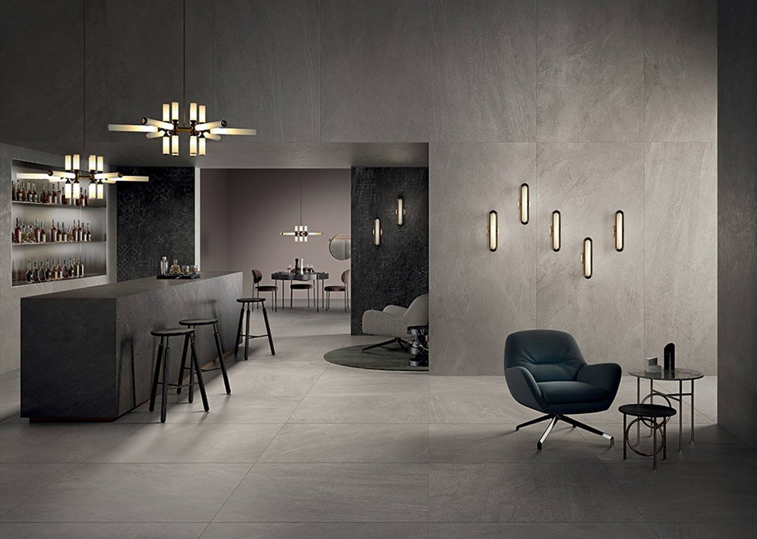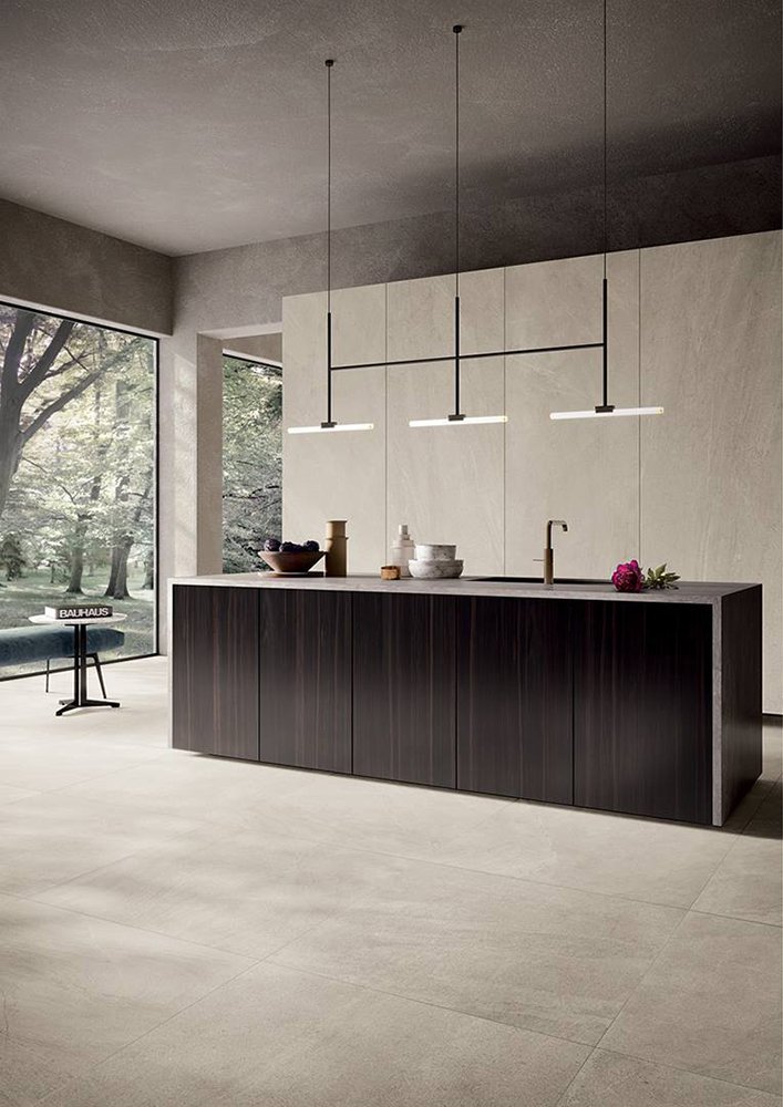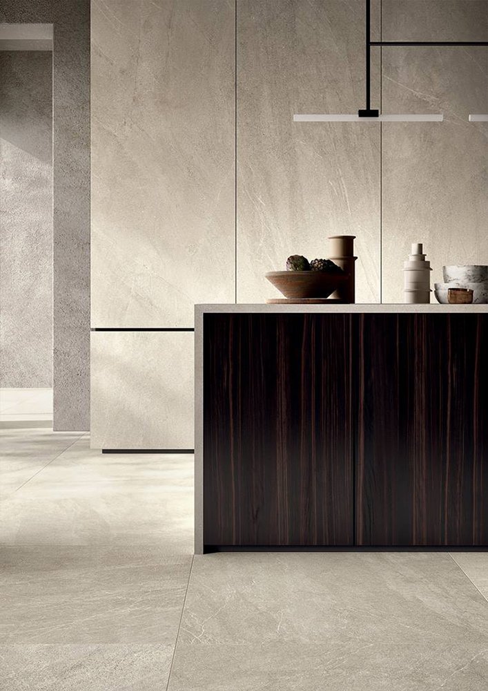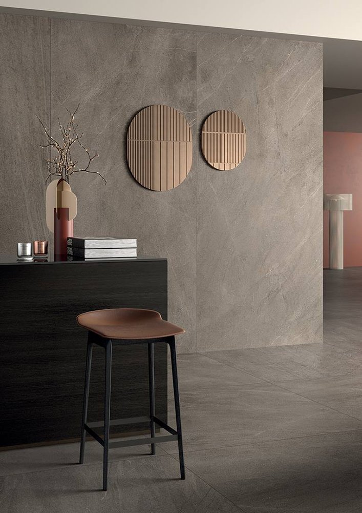— В составе Lea Ceramiche Slimtech Nextone есть широкоформатный керамогранит, мозаика с рисунками под камень.