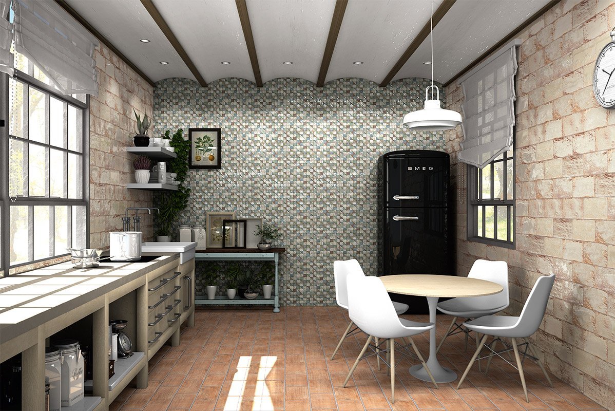 — В составе Mainzu Atelier, Mainzu есть керамическая плитка, мозаика с рисунками орнамент, в полоску, рустик, под мозаику.