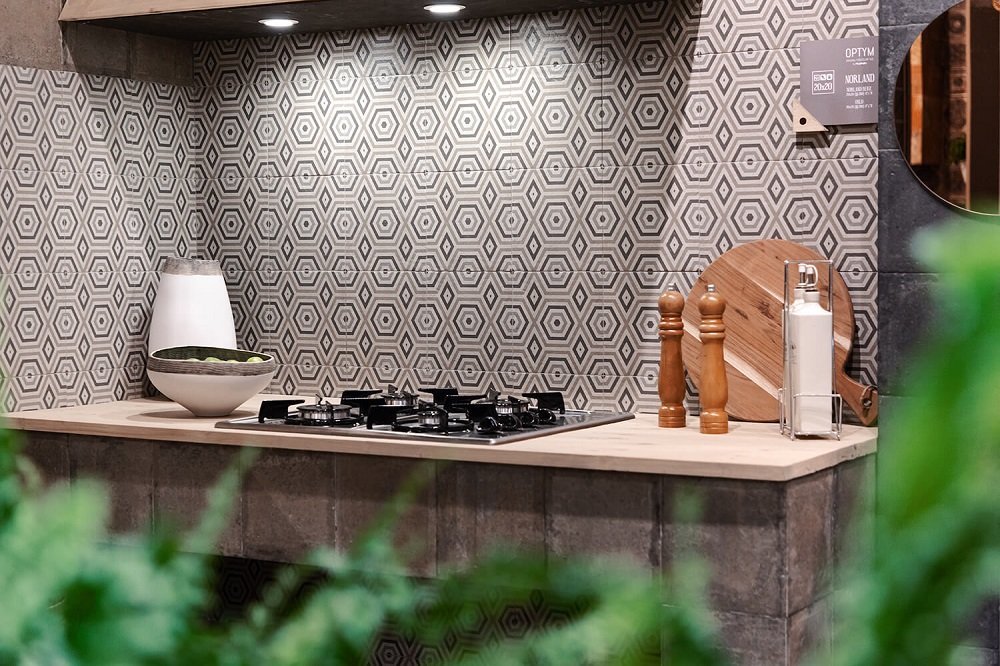 — В составе Mainzu Norland, Mainzu есть керамогранит, декоративные элементы, мозаика с рисунками под камень, орнамент.