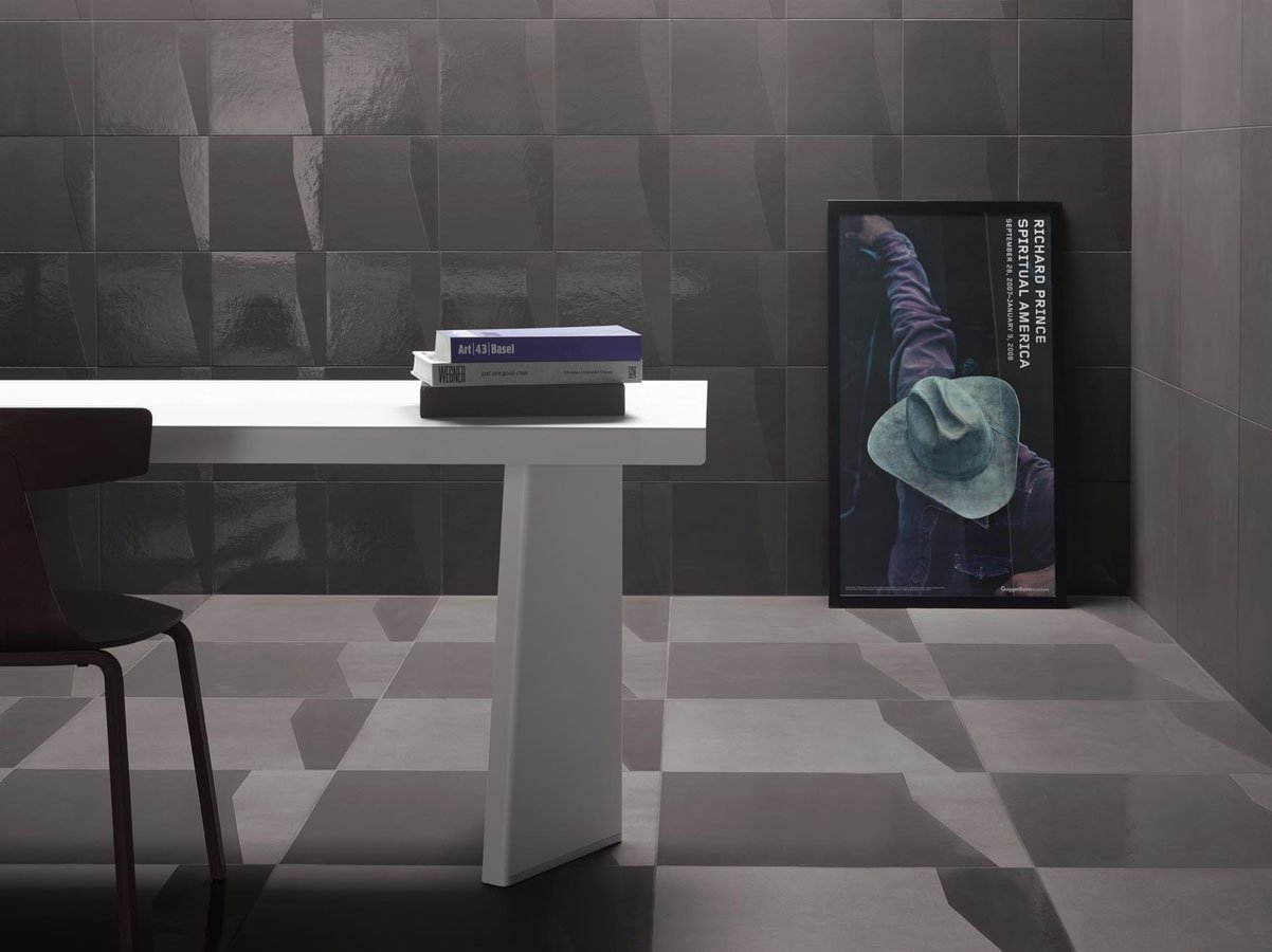 Керамогранит высокого качества Mutina Numi изготовлен в размерах 60х60 см и 30х30 см, а мозаика представлена в формате 5х5см. Плитке присущие синий, черный, белый, темно и светло-серый оттенки. Большим преимуществом коллекции Mutina Numi является достигнутый с помощью гравировки 3D-эффект, который имеет замечательный вид независимо от характера поверхности. На выбор представлены пять разновидностей геометрических и других форм: пик, суд, скала, залив, луна и подъем, разделяемых плоскость керамогранита на глянцевую и матовую. Данный ассортимент товара идеально справляется с созданием индивидуального и современного стиля.