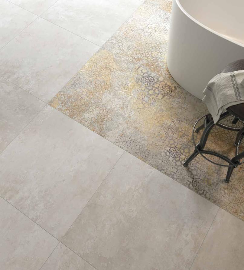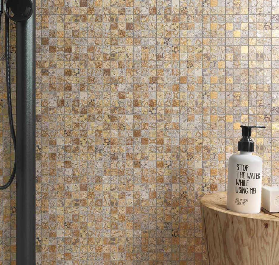 — В составе Naxos Fresco есть керамогранит, мозаика, декоративные элементы, широкоформатный керамогранит, мозаика с рисунками под бетон.