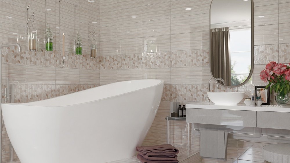 — Коллекция, а также её отдельные элементы подходят для ванной, для душа. Дизайнеры Royalstone могут составить для вас бесплатный 3D проект с использованием плитки из этой коллекции Нефрит керамика.