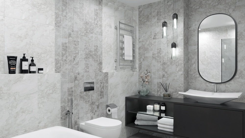 — Коллекция, а также её отдельные элементы подходят для ванной, для душа. Дизайнеры Royalstone могут составить для вас бесплатный 3D проект с использованием плитки из этой коллекции Нефрит керамика.
